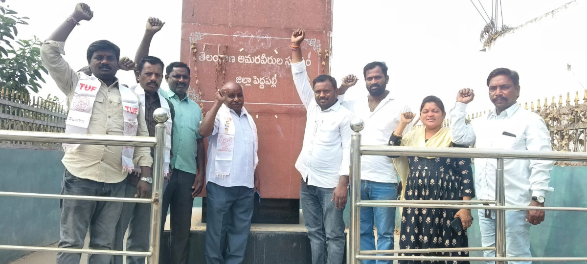 తెలంగాణ ఉద్యమ కారులను గుర్తించి 250 గజాల ఇంటి స్థలం, పెన్షన్లు ఇస్తామని ఆరు గ్యారంటీల్లో పొందుపరచి వాటి అమలుకు ప్రత్యేక సబ్ కమిటీని ఏర్పాటుకు చర్యలు తీసుకుంటామని ప్రకటన చేయడం పట్ల (టియూఎఫ్) తెలంగాణ ఉద్యమ కారుల ఫోరం అధ్యక్షులు డాక్టర్ చీమ శ్రీనివాస్ ఆధ్వర్యంలో ముఖ్యమంత్రి రేవంత్ రెడ్డి, మానిఫేస్టో కమిటీ చైర్మన్ ఐటీ శాఖ మంత్రి దుద్దిళ్ళ శ్రీధర్ బాబు, పొన్నం ప్రభాకర్ గౌడ్ లకు కృతజ్ఞతగా కరీంనగర్ ఫిలీం భవన్ లో ఆదివారం నిర్వహించిన  కృతజ్ఞత సభకు మండల ఉద్యమ కారులు తరలి వెళ్తు పెద్దపల్లి జిల్లా కేంద్రంలోని అమరవీరుల స్తూపం వద్ద నివాళులు అర్పించి మాట్లాడారు.
