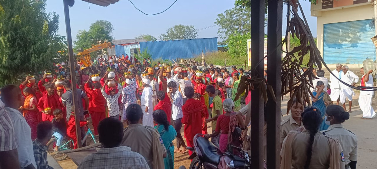 ఉదయాన్నే భజన బృందాలు, మంగళ వాయిద్యాల నాదం మధ్య అమ్మవారి విగ్రహాన్ని అడేల్లి గ్రామం నుండి ఆలయనికి చెచ్చి ప్రత్యేక ఏర్పాటు చేసిన నీటిలో విగ్రహాలను జలనివాసం చేసారు . అనంతరం వేదపండితుల ఆధ్వర్యంలో మహాగణపతి పూజ, పుణ్యాహవచనం, యాగశాల ప్రవేశం, స్థాపిత దేవతల పూజలు, మహాగణపతి హోమం, జఠాధివాసం వంటి పవిత్ర కార్యక్రమాలు ఘనంగా నిర్వహించారు.