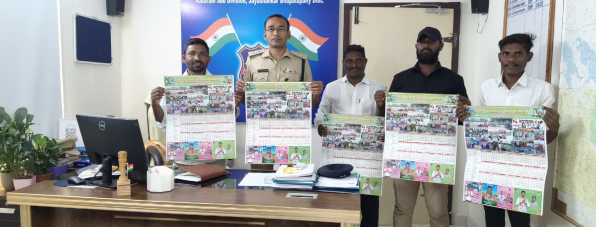 జయశంకర్ భూపాలపల్లి జిల్లా కాటారం మండలంలో తెలంగాణ ఆదివాసి గిరిజన సంఘం జిల్లా కమిటీ ఆధ్వర్యంలో రూపొందించిన 2026 నూతన క్యాలెండర్ను కాటారం డిఎస్పి సూర్యనారాయణ శనివారం ఆవిష్కరించారు. ఈ సందర్భంగా తెలంగాణ ఆదివాసి గిరిజన సంఘం జిల్లా కార్యదర్శి పోలం రాజేందర్ మాట్లాడుతూ, ఆదివాసీ సంస్కృతి పరిరక్షణ, స్వయంపాలన, రాజ్యాంగ హక్కుల సాధన కోసం సంఘం నిరంతరం పోరాటం కొనసాగిస్తుందని అన్నారు. ఆదివాసి సమాజంతో పాటు ఇతర పేద వర్గాల్లో నెలకొన్న సమస్యలపై రాజీలేని పోరాటం కొనసాగిస్తామని, ప్రజలకు మరింత చేరువ కావాలనే ఉద్దేశంతోనే ఈ నూతన క్యాలెండర్ను విడుదల చేసినట్లు వివరించారు.