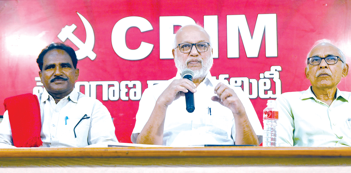 సోమవారం హైదరాబాద్లోని సీపీఐ(ఎం) రాష్ట్ర కార్యాలయంలో ఆ పార్టీ పొలిట్బ్యూరో సభ్యులు బీవీ.రాఘవులు, రాష్ట్ర కార్యదర్శి జాన్వెస్లీతో కలిసి ఆయన మీడియాతో మాట్లాడారు. దేశ పాలనను మార్కెట్ వ్యవస్థ నడిపిస్తుండటం పట్ల ఆందోళన వ్యక్తం చేశారు. ఇండియా ఏ దేశం నుంచి చమురును దిగుమతి చేసుకోవాలనే విషయాన్ని ట్రంప్ నిర్ణయించడమేంటి? అలాగైతే ప్రధాని మోడీ, చమురు మంత్రి ఎందుకని ప్రశ్నించారు. నరేగా పేరును వీబీజీఆర్ఏఎంజీగా మార్చడం, వంద రోజుల పనిని 125 రోజులకు పెంచుతామని మోడీ సర్కారు ప్రచారం చేయడం పెద్ద మోసమని అన్నారు. అన్ని పని దినాలు కల్పించాలంటే రూ. మూడు లక్షల కోట్లకుపైగా అవసరం కాగా బడ్జెట్లో అంతంత మాత్రమే నిధులు కేటాయించడం దారుణమనీ, దాంతో 125 రోజుల పనికల్పన అసాధ్యమని తేల్చి చెప్పారు.
