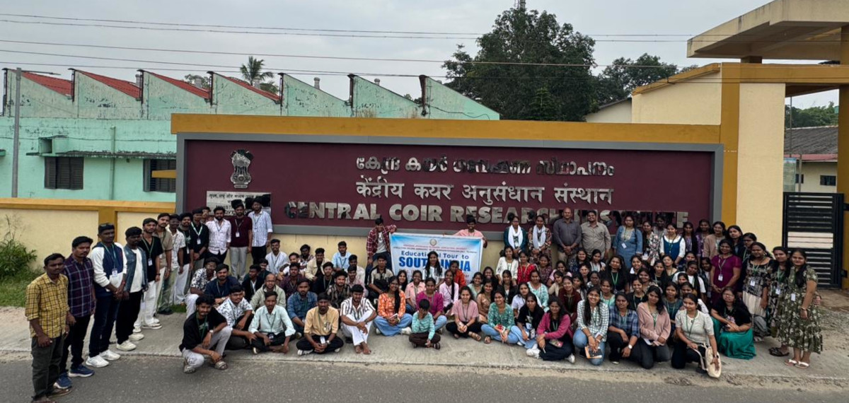 ప్రొఫెసర్ జయశంకర్ విశ్వ విద్యాలయం పరిధిలోని అశ్వారావుపేట వ్యవసాయ కళాశాల విద్యార్థులు ఈ నెల 23 వ తేదీ నుండి డిసెంబర్ 3 వ తేదీ వరకు పదిరోజులు పాటు చేపట్టిన దక్షిణ భారత విజ్ఞాన యాత్రలో భాగంగా 6 రోజు శుక్రవారం కేరళ,అల్లెపీ జిల్లా, అల్లపజా మండలం కావలూరు లోని సీసీ ఆర్ఐ (సెంట్రల్ కాయిర్ రీసెర్చ్ ఇన్స్టిట్యూట్ – కేంద్రీయ కొబ్బరి పీచు పరిశోధనా సంస్థ)  ను సందర్శించారు. అందులో తయారవుతున్న  కొబ్బరి ఉప ఉత్పత్తులు,ప్రయోజనాలు పై అధ్యయనం చేసారు. 102 మంది విద్యార్థులు పాల్గొనే ఈ విజ్ఞాన యాత్రకు టూర్ లీడర్లు గా స్థానిక వ్యవసాయ కళాశాల బోధనా సిబ్బంది డాక్టర్ టీ. శ్రావణ కుమార్, డాక్టర్ కే.శిరీష్, డాక్టర్ శ్రీ జన్, స్రవంతి లు వ్యవహరిస్తున్నారు.