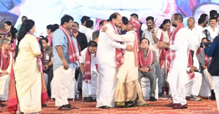 నవతెలంగాణ హైదరాబాద్: నాంపల్లి ఎగ్జిబిషన్ మైదానంలో హర్యానా మాజీ గవర్నర్ బండారు దత్తాత్రేయ కుమార్తె విజయలక్ష్మి ఆధ్వర్యంలో ‘అలయ్ బలయ్’ కార్యక్రమం ఘనంగా జరిగింది. ఈ కార్యక్రమానికి మాజీ ఉపరాష్ట్రపతి వెంకయ్యనాయుడు, తెలంగాణ గవర్నర్ జిష్ణుదేవ్ వర్మ, మాజీ గవర్నర్ విద్యాసాగర్రావు, పలువురు రాష్ట్ర మంత్రులు కోమటిరెడ్డి వెంకట్ రెడ్డి, పొన్నం ప్రభాకర్, ఎంపీ ఈటెల రాజేందర్, ఆర్మీ అధికారి అజయ్ మిశ్రా, సీపీఐ నాయకులు కె.నారాయణ, ఎమ్మెల్యే కూనంనేని సాంబశివరావు, ఎమ్మెల్సీ కల్వకుంట్ల కవిత, కాంగ్రెస్ సినీయర్ నేత విహెచ్, సినీ నటులు నాగార్జున, బహ్మానందం, ప్రముఖులు హాజరయ్యారు. వారందరికి దత్తాత్రేయ వారికి స్వాగతం పలికారు.