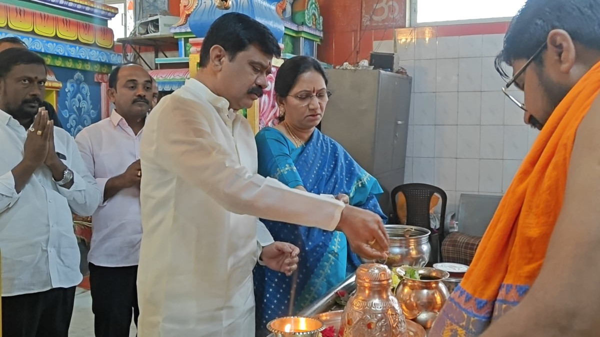 నూతన సంవత్సరంలో రాష్ట్ర ప్రజలందరూ సుభిక్షంగా ఉండాలని కోరుకుంటున్నట్లు మాజీ మంత్రి, బాల్కొండ ఎమ్మెల్యే వేముల ప్రశాంత్ రెడ్డి తెలిపారు. గురువారం నూతన సంవత్సరం, వివాహ వార్షికోత్సవం సందర్భంగా జూబ్లీహిల్స్ హనుమాన్ దేవాలయాన్ని, శివాలయాన్ని సతి సమేతంగా దర్శించుకొని ప్రత్యేక పూజ కార్యక్రమంలో ఎమ్మెల్యే వేముల ప్రశాంత్ రెడ్డి నీరజ రెడ్డి దంపతులు పాల్గొన్నారు. వేద పండితులు ప్రశాంత్ రెడ్డి దంపతుల ఆశీర్వాదము తీసుకొన్నారు. ఈ సందర్భంగా నూతన సంవత్సరంలో రాష్ట్ర ప్రజలందరూ సుభిక్షంగా, సుఖ సంతోషాలతో వర్ధిల్లాలని కోరుకున్నట్లు ప్రశాంత్ రెడ్డి తెలిపారు.
