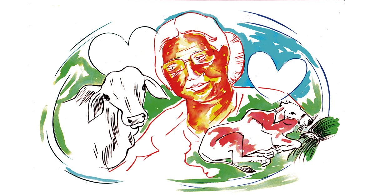 ‘కావల్సినంత తినండి’ అంటూ మోపెడు గడ్డి తెచ్చి వాటి ముందు పడేసింది. తౌడు కలిపిన నీళ్లను గడ్డి పక్కనే పెట్టింది.