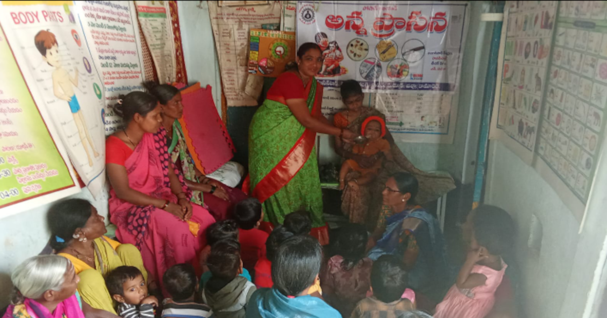 డోంగ్లి మండలంలోని హాసన్ టాక్లి అంగన్వాడి కేంద్రంలో మంగళవారం అన్న ప్రసన్న కార్యక్రమం నిర్వహించారు. ఈ సెంటర్లో 7 నెలలు నిండిన అబ్బాయికి బాల అమృతం తయారుచేసి దాని ద్వారా ప్రయోగాలు గురించి అవగాహన కల్పించారు. ఈ కార్యక్రమంలో నియాంష్, శివాని, జ్ఞానేశ్వర్, గ్రామ అధ్యక్షురాలు గంగామణి, ఆశ వర్కర్ అన్నపూర్ణ, అంగన్వాడీ టీచర్ సచిత, సహాయకురాలు లక్ష్మి బయి, గ్రామంలోని తల్లులు కిశోర బాలికలు గ్రామ పెద్దలు పాల్గొన్నారు.