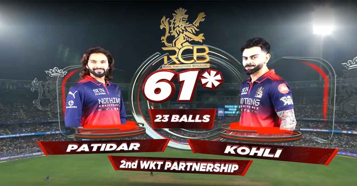 తొలుత టాస్ గెలిచి ముంబై బౌలింగ్ ఎంచుకుంది. బ్యాటింగ్ దిగిన ఆర్సీబీకి ఓపెనర్లు శుభారంబానిచ్చారు. సాల్ట్ 36 బంతుల్లో 78 పరుగులతో కదంతొక్కాడు. ఆరు ఫోర్లు, ఆరు సిక్సలర్లతో ముంబై బౌలర్లును ఆడుకున్నాడు. మరో ఎండోలో అతనికి కోహ్లి సపోర్ట్గా ఆడాడు. పదో ఓవర్లు 120 పరుగుల వద్ద ఆర్సీబీ సాల్ట్ రూపంలో తొలి వికెట్ కోల్పోయింది. ఆ తర్వాత క్రీజులోకి వచ్చిన పాటిదార్ ధనాధన్ ఆటతో స్కోర్ బోర్డును పరుగులు పెట్టించాడు. 17 బంతుల్లోనే అర్ధ సెంచరీ పూర్తి చేశారు. కోహ్లి కూడా అర్ధ సెంచరీ పూర్తి చేసుకున్నాడు. ఈక్రమంలోనే జోరుమీదున్న కోహ్లీని పాండ్యా ఔట్ చేశాడు. అయినా కానీ పాటిదార్ తన ఆటలో దూకుడు తగ్గించలేదు. టీమ్ హెడ్తో కలిసి భారీ స్కోర్ దిశగా నడిపించాడు. ఎడాపెడా షాట్లతో బౌలర్లపై విరుచుకుపడ్డారు. పాటిదార్ భీకర్ ఆటకు స్నాంటార్న్ బ్రేకులు వేశాడు. 15 ఓవర్లో పాటిదాను స్నాంటార్ను ఔట్ చేశాడు. ఆఖరులో హెడ్, జెఎం శర్మ మెరుపులు మెరిపించారు.