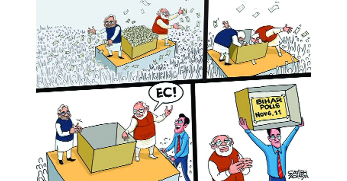 ఒకప్పుడు మీకు ఎన్ని రూ.లక్షలు కావాలని ఊరించి ఊసూరని పించిన మోడీ మహాశయుడు మరోసరి అదే తంతు నడిపించారు. ఏదో విధంగా బీహార్‌లో అధికారంలో కొనసాగకపోతే మిగిలినచోట్ల కూడా దెబ్బతింటామన్నది బీజేపీ, ఆరెస్సెస్‌ భయం. దేశంలో మూడుసార్లు ఏదోలా అధికారంలోకి వచ్చినా వారికి కొరుకుడుపడని రాష్ట్రాల్లో బీహార్‌ ఒకటి. అవకాశవాద ముఖ్యమంత్రి, జెడియు అధినేత నితీశ్‌ కుమార్‌ అటూ ఇటూ మారుతుండడాన్ని ఉపయోగించుకునే వారు మనుగడ సాగిస్తున్నారు. 2000 సంవత్సరం నుంచి ఇప్పటివరకూ వచ్చిన ప్రభుత్వాలన్నిటినీ మూడుగా విభజించి చూపడం పరిపాటి. ఒంటరిగా నితీశ్‌కుమార్‌, బీజేపీతో కలసి విడిపోయిన, ఆర్‌జెడితో కలసివిడిపోయిన దశలు. అయితే ఈసారికి రాజకీయ నైతికత కోల్పోయిన ఆయన్ను ఇంటిదారి పట్టించేందుకు ప్రజలు, ప్రతిపక్ష ఇండియా వేదిక, వామపక్షాలు రంగం సిద్ధం చేసుకునేవున్నాయి. బీజేపీ కూడా ఈ క్రమంలో నితీశ్‌ను వెనక్కునెట్టి తామే పెద్దశక్తిగా కూచోవడానికి సిద్ధమైపోయింది కూడా. అయితే ఒంటరిగా పోరాడ గలిగిన సత్తా,ధైర్యం కూడా బీజేపీకి లేవు.