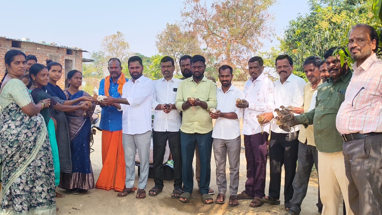 మహిళా సంఘాలకు మదర్ దీని ద్వారా కోడి పిల్లలను అందించిన ఏపిఎం, సర్పంచ్