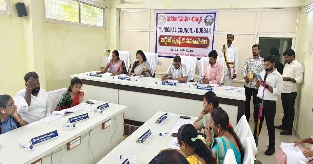 నవతెలంగాణ-మిరుదొడ్డి: పురపాలికలో ప్రజలకు మెరుగైన సేవలు అందించే విషయంలో అధికారులు, ప్రజాప్రతినిధులు సమన్వయంతో కలిసి పని చేయాలని జిల్లా అదనపు పాలనాధికారి (స్థానిక సంస్థలు) అబ్దుల్ హమీద్ తెలిపారు. దుబ్బాక పురపాలిక కార్యాలయంలో పురపాలిక చైర్పర్సన్ శ్రీరామ్ సంగీత అధ్యక్షతన నిర్వహించిన పురపాలిక వార్షిక బడ్జెట్ సమావేశానికి ఆయన ముఖ్య అతిథిగా హాజరయ్యారు. ఈ సందర్భంగా రూ.40.38 కోట్లతో ప్రతిపాదించిన అంచనా వార్షిక బడ్జెట్ను పురపాలిక సీనియర్ అకౌంటెంట్ అనిల్ రెడ్డి ప్రవేశపెట్టగా, పాలకవర్గం సభ్యులు ఏకగ్రీవంగా ఆమోదించారు.2026-27 ఆర్థిక సంవత్సరానికి సంబంధించి అంచనా ఆదాయం (సాధారణ నిధులు, గ్రాంటులు కలుపుకొని) రూ.40.38 కోట్లుగా, అంచనా వ్యయం రూ.40.17 కోట్లు, మిగులు బడ్జెట్ రూ.21 లక్షలుగా ప్రతిపాదించారు. రానున్న ఆర్థిక సంవత్సరానికి మున్సిపల్ సాధారణ ఆదాయము రూ.5.48 కోట్లు, సాధారణ వ్యయము రూ. 5.48 కోట్లుగా అంచనా వేశారు. వచ్చే ఆర్థిక సంవత్సరంలో 10 శాతం గ్రీన్ బడ్జెట్ కొరకు రూ.54.8 లక్షల సాధారణ నిధులను కేటాయించారు. ఈ సందర్భంగా ఆయన మాట్లాడుతూ పట్టణ అభివృద్ధికి, ప్రజల కనీస సౌకర్యాల కల్పన, మౌలిక వసతుల మెరుగుకు పురపాలిక ఆదాయ వనరులను పెంచుకోవాల్సిన అవసరం ఉందని, ఆదిశగా ప్రణాళికలు రూపొందించుకోవాలని సూచించారు. పురపాలిక అభివృద్ధికి నూతన పాలకవర్గం మరింత కృషి చేయాలని కోరారు.ఈ సందర్భంగా పలువురు కౌన్సిలర్లు తమ వార్డుల్లో ఉన్న సమస్యలను జిల్లా అదనపు పాలనాధికారి దృష్టికి తీసుకురాగా, వాటన్నిటిని త్వరలో పరిష్కరిస్తామని హామీ ఇచ్చారు. ఈ కార్యక్రమంలో పురపాలిక కమీషనర్ రమేష్ కుమార్, పురపాలిక వైస్ చైర్మన్ ఆస సులోచన, పుర మేనేజర్ శ్రీనివాస్, పలువురు కౌన్సిలర్లు, పుర సిబ్బంది తదితరులు పాల్గొన్నారు.