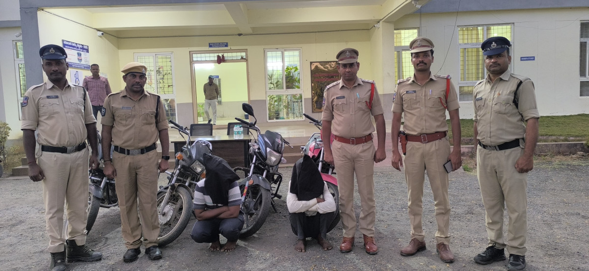 బైక్ దొంగతనం కేసులో ఇద్దరు దొంగలను అరెస్టు చేసినట్లు ఆర్మూర్ రూరల్ సీఐ గడ్డం జాన్ రెడ్డి తెలిపారు. మండల కేంద్రంలోని పోలీస్ స్టేషన్ లో ఆదివారం నిర్వహించిన మీడియా సమావేశంలో ఎస్ ఐ శైలేందర్ తో కలిసి సీఐ కేసు వివరాలను వెల్లడించారు. బాల్కొండ పోలీస్ స్టేషన్ పరిధిలోని బస్సా పూర్ గ్రామ శివారులో ఆదివారం ఎస్ ఐ శైలేందర్ ఆధ్వర్యంలో వాహనాలను తనిఖీ చేస్తుండగా కోటగిరి మండలం జల్లపల్లి గ్రామానికి చెందిన షేక్.ఇస్మాయిల్ ద్విచక్ర వాహనంపై అనుమానాస్పదంగా రాగా అతనిని పోలీసులు తనిఖీ చేశారు.