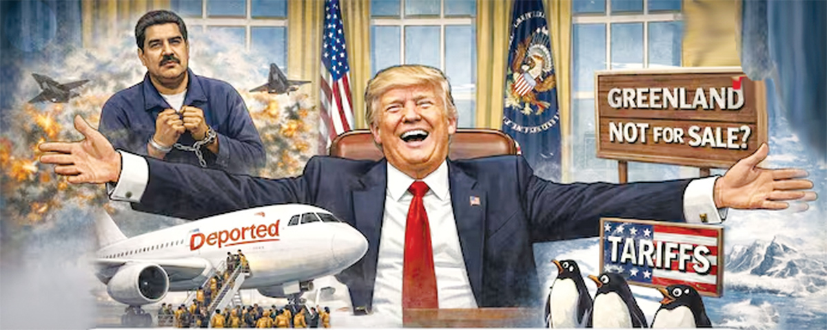 వాషింగ్టన్ : అమెరికా అధ్యక్షుడిగా డోనాల్డ్ ట్రంప్ ఓవల్ కార్యాలయంలో ఎప్పుడు ప్రవేశించారో అప్పుడే దౌత్యం అనే పదం అక్కడి నుంచి అదృశ్యమైంది. ఇప్పుడు అక్కడ అహంకారం, చపలత్వం మాత్రమే కన్పిస్తున్నాయి. వెనిజులా అధ్యక్షుడు నికొలస్ మదురోను నిర్బంధించడం మొదలుకొని గ్రీన్లాండ్ను లక్ష్యంగా చేసుకోవడం వరకూ, వలసదారులను గొలుసులతో బంధించి దేశం నుంచి బహిష్కరించడం మొదలుకొని అంటార్కిటికాపై పన్ను విధించడం వరకూ అధికారం, ఎగతాళి మధ్య రేఖను ట్రంప్ చెరిపేశారు. ఒక్క మాటలో చెప్పాలంటే ట్రంప్ పాలనలో ప్రతిదీ సాధ్యమే…ప్రతిదీ చట్టబద్ధమే.