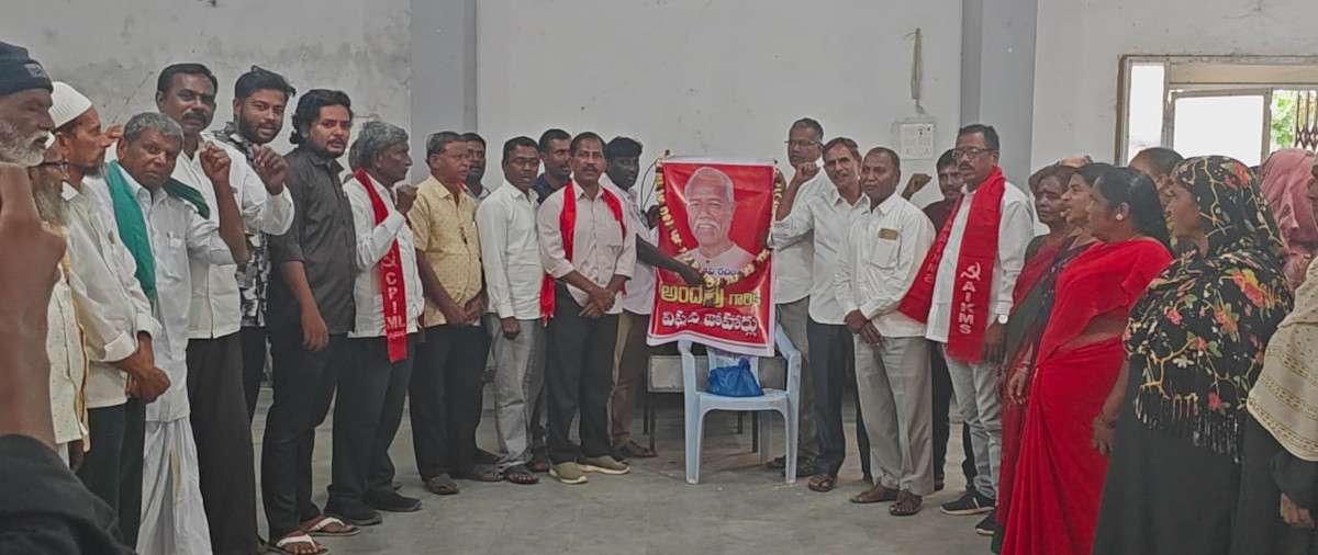 ప్రజాకవి తెలంగాణ జాతీయ గీతం రచయిత అందెశ్రీ ఈరోజు మరణించడం విషాదకరణంఅని, పట్టణంలో అరుణోదయ, ఐ ఎఫ్ టి యు, పిడిఎస్యు, పి వై ఎల్, పి ఓ డబ్ల్యు, ఏఐకేఎంఎస్ ప్రజా సంఘాల ఆధ్వర్యంలో అందెశ్రీ చిత్రపటానికి పూలమాలలు వేసి నివాళులు అర్పించారు.