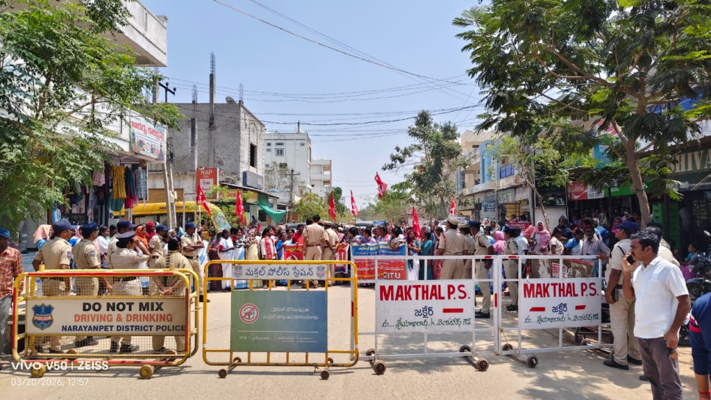 నవతెలంగాణ మక్తల్ : నారాయణపేట జిల్లా వ్యాప్తంగా ఉన్న ఆశా వర్కర్లు నేడు సిఐటియు ఆధ్వర్యంలో మక్తల్ ఆర్ఎంపి గెస్ట్ హౌస్ నుండి ర్యాలీ నిర్వహించారు. అనంతరం మంత్రి వాకిటి శ్రీహరి ఇంటి ముందు ధర్నా నిర్వహించారు. ప్రస్తుత జరుగుతున్న రాష్ట్ర అసెంబ్లీ బడ్జెట్ సమావేశంలో ఆశా వర్కర్లకి 18 వేల వేతనం పెంచాలని సిఐటియు ఆధ్వర్యంలో భారీ ఎత్తున ఆశా వర్కర్లు తరలి వచ్చి మంత్రి వాకిటి శ్రీహరి ఇల్లు ముట్టడికి యత్నం చేశారు. పోలీసులు వారిని అడ్డుకోవడంతో తోపులాట జరిగింది. దీంతో అక్కడ ఉద్రిక్తత నెలకొంది.