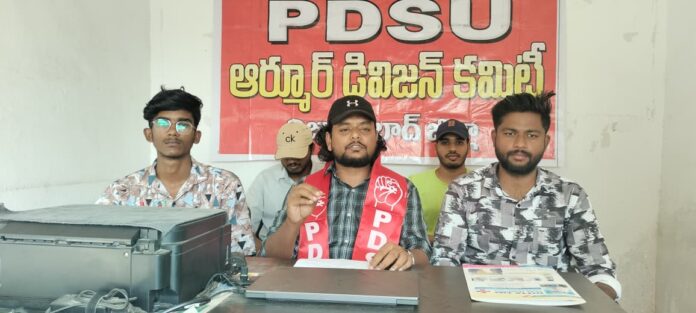 నవతెలంగాణ-ఆర్మూర్ : పట్టణ కేంద్రలో పీ.డి.ఎస్.యు కార్యాలయంలో బుధవారం డివిజన్ కమిటీ ఆధ్వర్యంలో పత్రిక విలేకరుల సమావేశం నిర్వహించినారు.. ఈ సందర్బంగా పీ.డి.ఎస్.యు జిల్లా కార్యదర్శి ప్రిన్స్ మాట్లాడుతు… పెర్కిట్లోని ప్రభుత్వ సంక్షేమ BC ఇంటిగ్రాటెడ్ (Boys) , బీసీ (బాయ్స్) పోస్ట్ మాట్రిక్ హాస్టల్ వద్ద 09-03-2026 రాత్రి జరిగిన ఘటనలో, సుమారు 20-25 రౌడీ మూటలు మద్యం సేవించి కత్తులతో హాస్టల్ వద్దకు వచ్చి విద్యార్థులపై దాడి చేయడానికి ప్రయత్నించారని తెలిపారు. ఈ సందర్భంలో పోస్ట్ మ్యాట్రిక్ హాస్టల్ విద్యార్థి నాగుల రాహుల్ మీరు ఎందుకు వచ్చారు అని అడిగినందుకు అకారణంగా దాడికి గురై తీవ్రంగా గాయపడ్డాడు. ఈ దాడిలో అతని కర్ణభేరి (చెవి గుబ) పగిలి ప్రస్తుతం ఆసుపత్రిలో చికిత్స పొందుతున్నాడు. ఈ ఘటన సమయంలో హాస్టల్లో ఉన్న( HWO) హెచ్ డబ్ల్యు ఓ జైపాల్ విద్యార్థిని రక్షించడానికి ఎటువంటి చర్యలు తీసుకోకుండా నిర్లక్ష్యంగా వ్యవహరించాడు. దాడి జరుగుతున్నప్పటికీ గేటుకి తాళం వేసి తెరవకుండా, సహాయం చేయకుండా ప్రేక్షకుడిలా నిలిచాడు. అంతేకాకుండా, ఘటనను తన మొబైల్లో వీడియోగా చిత్రీకరించి, తరువాత వాటిని డిలీట్ చేయడం ద్వారా కీలక సాక్ష్యాలను మాయం ఐయ్యాయి. ఇంకా ఆశ్చర్యకరమైన విషయం ఏమిటంటే, గాయపడిన విద్యార్థిని హాస్పిటల్కు తరలించే బాధ్యత కూడా హెచ్ డబ్ల్యు ఓ తీసుకోకుండా, పిడిఎస్యు నాయకులు స్వయంగా ఆసుపత్రికి తీసుకెళ్లి చికిత్స ఖర్చులు భరించారు. అలాగే, సంఘటన సమయంలో డయల్-100 కి కాల్ చేయడం కూడా హెచ్ డబ్ల్యు ఓ చేయలేదు, స్థానిక ప్రజలే పోలీసులకు సమాచారం అందించారు. ఈలాంటి వార్డెన్ జైపాల్ ను వెంటనే డిస్మిస్ చేయాలని , ఈ ఘటన జరిగిన తర్వాత అర్చన విద్యార్ధిని కనీసం హాస్పిటల్ కూడా తీసుకు వెళ్లలేదని, వారి తల్లిదండ్రులకు ఫోన్ చేసి మీ కుమారుడు అనవసరంగా గొడవలు పడుతున్నాడని అబద్దాలు చేప్పి విద్యార్ధిని బెదిరిస్తుంది. తన హాస్టల్ విద్యార్థిని రక్షించాల్సిన వార్డెన్ అర్చన విధుల నిర్లక్ష్యం చేసినందుకు వెంటనే ఉద్యోగం నుండి సస్పెండ్ చేయాలని డిమాండ్ చేస్తున్నాం.