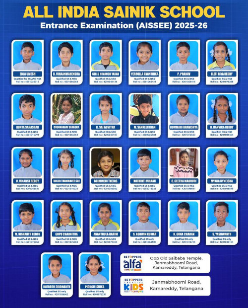 ఇటీవల వెలువడిన నవోదయ సైనిక్ పరీక్ష ఫలితాల్లో కామారెడ్డి పట్టణానికి చెందిన వివేకానంద బీ టాపర్స్ విద్యార్థులు ప్రభంజనం సృష్టించారు. సైనిక్ ఫలితాల్లో ఒక్కరు కాదు ఇద్దరు కాదు ఏకంగా 26 మంది విద్యార్థులు సైనిక్ పరీక్షలో అర్హత పొందడం చాలా గర్వకారణమని యాజమాన్యం తెలియజేశారు. ఈ ఫలితాల పట్ల పాఠశాల కరస్పాండెంట్ గురువేందర్ రెడ్డి , ప్రిన్సిపాల్ వీరభద్రప్ప , డైరెక్టర్ రవిరెడ్డి హర్షం వ్యక్తం చేసారు. పాఠశాల యాజమాన్యం విద్యార్థులను వారి తల్లిదండ్రులను, సైనిక్ సిబ్బందిని ప్రత్యేకంగా అభినందించారు. ఈ సందర్భంగా తల్లిదండ్రులు వివేకానంద పాఠశాల ఇంత మంచి ఫలితాలు సాధించడం కామారెడ్డికే గర్వకారణమని పేర్కొన్నారు.