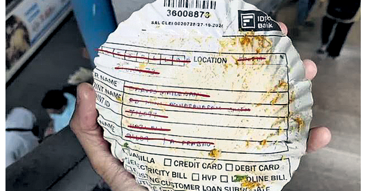 పేపర్ ప్లేట్లో బ్యాంక్ ఖాతా వివరాలు