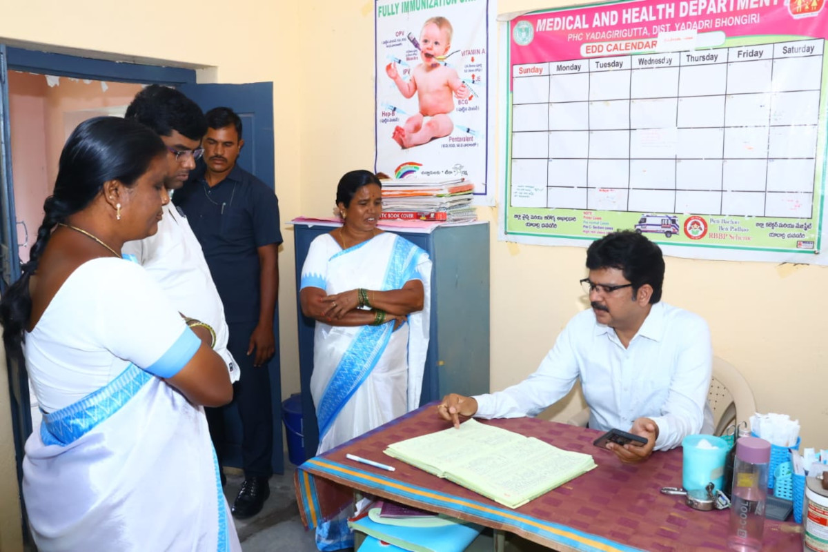 వైద్యులు, సిబ్బంది అందుబాటులో ఉండి ఆస్పత్రికి వచ్చే పేషెంట్లకు మెరుగైన వైద్యం అందించాలని యాదాద్రి భువనగిరి జిల్లా కలెక్టర్ హనుమంతరావు అన్నారు. గురువారం, యాదగిరిగుట్ట మండలం చిన్న కందుకూరు గ్రామంలో పల్లె దవాఖాన ని ఆయన ఆకస్మిక తనిఖీ చేసారు. ప్రతి రోజు ఆసుపత్రికి ఓపి లో ఎంత మంది వస్తున్నారని ఓ. పి రిజిస్టర్ ను పరిశీలించారు. ఆసుపత్రికి వచ్చే పేషెంట్లు ఏ రోగాలతో వస్తున్నారని, అడిగి తెలుసుకున్నారు.అన్ని రకాల మందులు అందుబాటులో ఉన్నాయ అని తెలుసుకు న్నారు. సిబ్బంది అందరూ రోజు విధులకు హాజరవుతున్నారా అని అటెండెన్స్ రిజిస్టర్ను పరిశీలించారు. గత నెలలో ఎన్ని ప్రసవాలు జరిగాయని, ఎక్కడ అయ్యాయని సంబంధిత అధికారులను అడిగి తెలుసుకున్నారు.