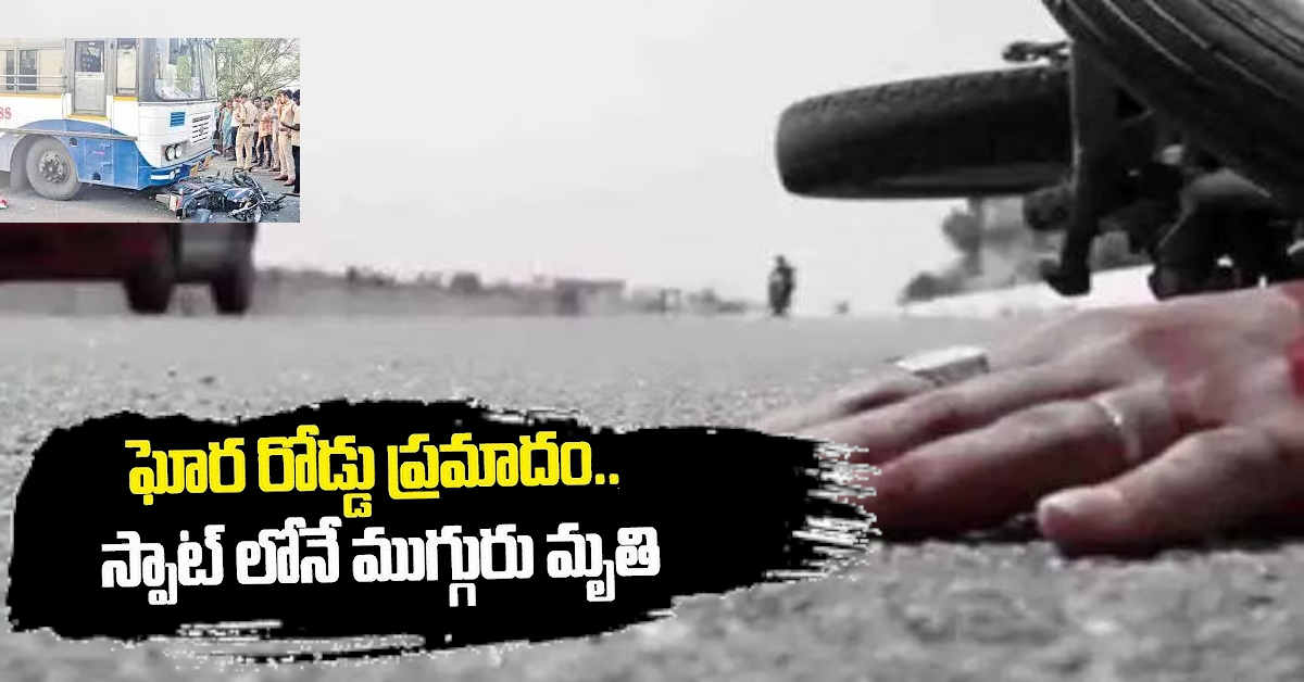 నవతెలంగాణ మెదక్: మెదక్ జిల్లా కొల్చారం మండలం రాంపూర్ వద్ద ఘోర రోడ్డు ప్రమాదం చోటుచేసుకుంది. జాతీయ రహదారిపై ఆర్టీసీ బస్సును ద్విచక్రవాహనం ఢీకొట్టిన ఘటనలో ముగ్గురు అక్కడికక్కడే మృతి చెందారు. ఈ ఘోర ప్రమాదంపై పూర్తి వివరాలు తెలియాల్సి ఉంది.