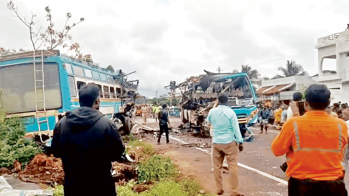 పోలీసులు తెలిపిన వివరాల ప్రకారం, మధురై నుంచి సెన్కొట్టారు వెళ్తున్న ఓ ప్రయివేటు బస్సు దురైసామిపురం ప్రాంతానికి రాగానే, ఎదురుగా తెన్కాశీ నుంచి వస్తోన్న మరో బస్సును బలంగా ఢకొీట్టింది. స్పాట్లో ఐదుగురు మహిళలు, ఒక పురుషుడు మరణించగా, మరోకరు చికిత్స పొందుతూ మరణించారు. మరో 30 మందికి పైగా గాయపడ్డారు. గాయపడిన వారిలో కొందరి పరిస్థితి విషమంగా ఉందని సమాచారం. ప్రమాదం ధాటికి రెండు బస్సులు తీవ్రంగా ధ్వంసమయ్యాయి. విషయం తెలుసుకున్న పోలీసులు, రెస్క్యూ సిబ్బంది వెంటనే ఘటనా స్థలానికి చేరుకుని సహాయ చర్యలు చేపట్టారు. గాయపడిన వారిని చికిత్స కోసం తెన్కాశీ ప్రభుత్వ ఆస్పత్రికి తరలించారు. విషయం తెలుసుకున్న తెన్కాశి జిల్లా కలెక్టర్ కమల్ కిశోర్, జిల్లా పోలీసు సూపరింటెండెంట్ అరవింద్ నేతృత్వంలోని పోలీసులు ప్రమాద స్థలానికి చేరుకున్నారు. ప్రమాద తీవ్రతను పరిశీలించి, కేసు నమోదు చేసి దర్యాప్తు ప్రారంభించారు. బస్సును ప్రమాద స్థలం నుంచి తొలగించే పనులు చేపట్టారు.