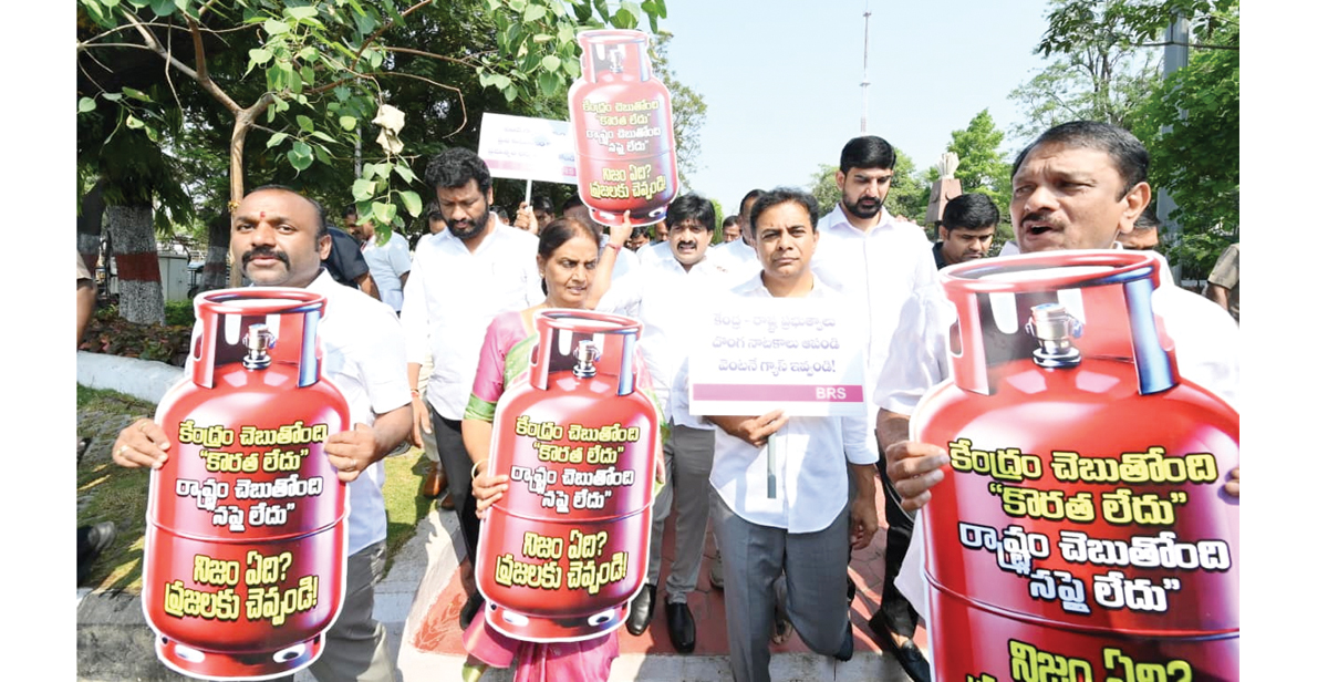 ఎల్పీజీ కొరతకు నిరసనగా బీఆర్‌ఎస్‌ ఎమ్మెల్యేలు, ఎమ్మెల్సీలు మంగళవారం గన్‌పార్కు వద్ద ఆందోళన చేపట్టారు. గ్యాస్‌ సిలిండర్ల ప్లకార్డులతో నిరసన తెలిపారు. ఈ సందర్భంగా బీఆర్‌ఎస్‌ వర్కింగ్‌ ప్రెసిండెంట్‌ కేటీఆర్‌ మాట్లాడుతూ యుద్ధం ప్రారంభమయ్యాక ఎల్పీజీ కొరతతో ప్రజలు ఇబ్బందులు ఎదుర్కొంటున్నారని తెలిపారు. కేంద్ర ప్రభుత్వం కొరత లేదంటూ నమ్మబలుకుతోందని విమర్శించారు. క్షేత్ర స్థాయిలో మాత్రం గ్యాస్‌ కొరత తీవ్రంగా ఉందన్నారు. భవిష్యత్తులో గ్యాస్‌ సిలిండర్‌ సైజ్‌ తగ్గిస్తారన్న అనుమానాలున్నాయని తెలిపారు. కేంద్ర ప్రభుత్వం గ్యాస్‌ కొరత లేకుండా చర్యలు చేపట్టాలని ఆయన డిమాండ్‌ చేశారు.