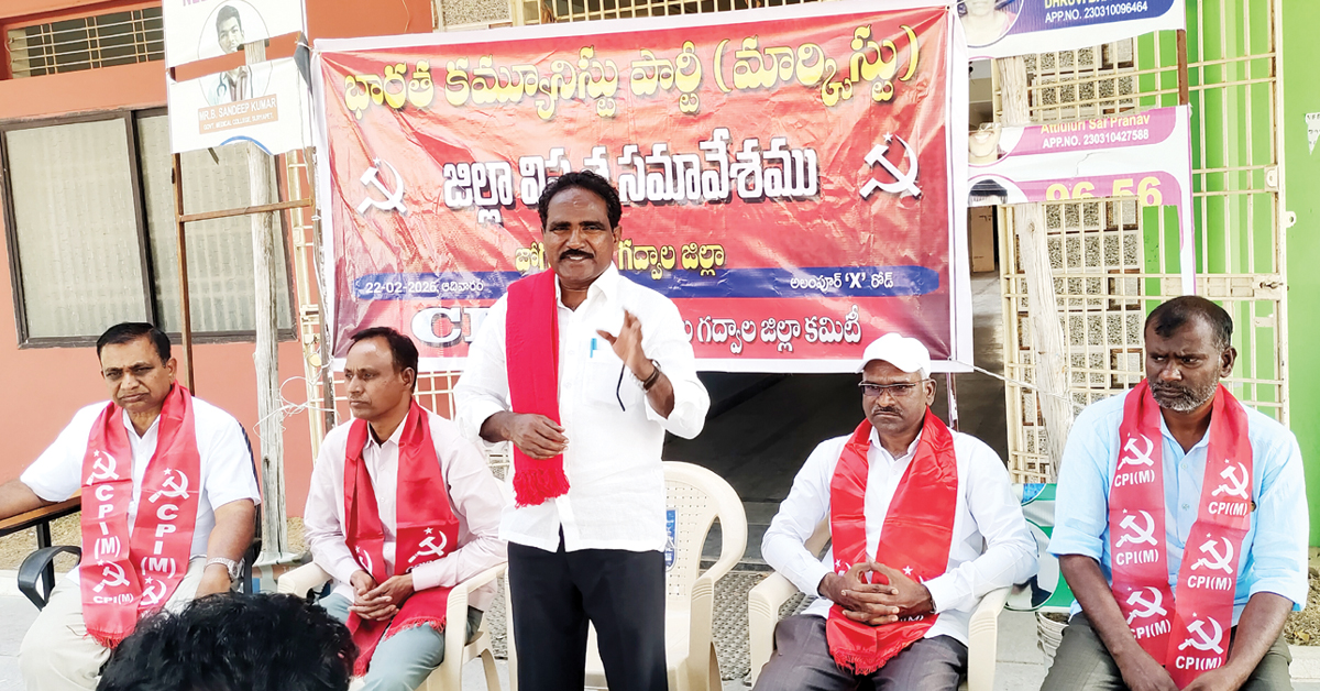 బీజేపీ అనుసరిస్తున్న ప్రజా, కార్మిక వ్యతిరేక విధానాలకు వ్యతిరేకంగా జరిగే ప్రచారోద్యమంలో పాల్గొనాలని సీపీఐ(ఎం) రాష్ట్ర కార్యదర్శి జాన్ వెస్లీ ప్రజలకు పిలుపునిచ్చారు. ఆదివారం జోగులాంబ గద్వాల జిల్లా అలంపూర్ చౌరస్తాలో జి.రాజు అధ్యక్షతన సీపీఐ(ఎం) జిల్లా విస్తృత స్థాయి సమావేశం నిర్వహించారు. ఈ సందర్భంగా ఆయన మాట్లాడుతూ.. పార్లమెంటు అంటే ప్రజా సమస్యలను పరిష్కరించేదిగా, ప్రజా ప్రతినిధుల సమష్టి భాగస్వామ్యంతో ముందుకు నడవాలని, కానీ బీజేపీ పార్లమెంటులో ఏకపాత్రాభినయం చేస్తూ ప్రజాస్వామ్యాన్ని అపహాస్యం చేస్తున్నదని విమర్శించారు. బీజేపీ గ్రామీణ ప్రాంతాల్లో ప్రజల ఉపాధి దెబ్బతీయడం కోసం, అఖిల పక్ష పార్టీలతో చర్చించకుండా పార్లమెంటులో ఏకపక్షంగా ఉపాధి హామీ చట్టాన్ని రద్దుచేసి, వికసిత్ భారత్ గ్రామ్ జీ బిల్లు ఆమోదం చేసుకున్నారని తెలిపారు.
