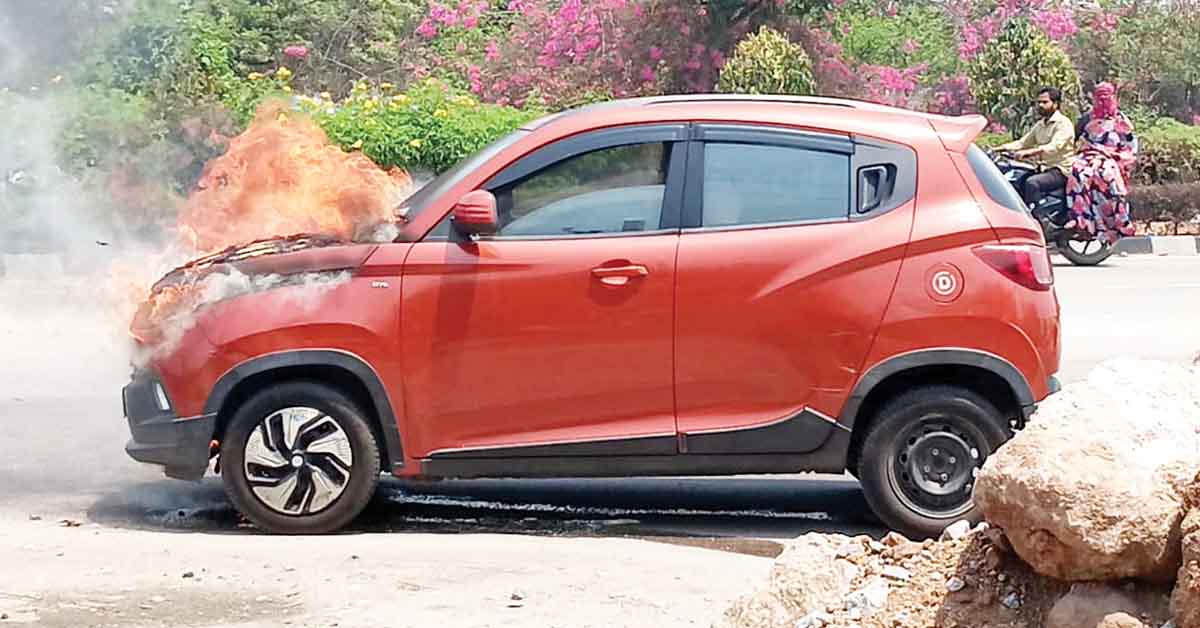 యాదాద్రిభువనగిరి జిల్లా బీబీనగర్ మండల పరిధి సమీపంలో వరంగల్-హైదరాబాద్ జాతీయ రహదారిపై శనివారం కారులో మంటలు వ్యాపించి దగ్ధమైంది. ఇందుకు సంబంధించి సీఐ ప్రభాకర్రెడ్డి తెలిపిన వివరాల ప్రకారం.. హనుమకొండకు చెందిన వద్ది రాజు- శిరీష దంపతులు ఆరోగ్య పరీక్షల నిమిత్తం కారులో సికింద్రబాద్లోని యశోద ఆస్పత్రికి వచ్చారు. తిరిగి వెళ్లే సమయంలో డ్రైవర్ కారులో ఏసీ పెంచడంతో ఇంజిన్లో పొగలు వచ్చాయి. దీంతో డ్రైవర్ నరేష్ అప్రమత్తమై కారును రోడ్డు పక్కన ఆపి పరిశీలిస్తుండగానే మంటలు వ్యాపించాయి. వెంటనే రాజు, శిరీష దిగిపోవడంతో ప్రాణాపాయం తప్పింది. విషయం తెలుసుకున్న పోలీసులు, హైవే సిబ్బంది అక్కడకు చేరుకొని ట్రాఫిక్కు అంతరాయం కలగకుండా చర్యలు చేపట్టారు. పోలీసులు కేసు దర్యాప్తు చేస్తున్నారు.