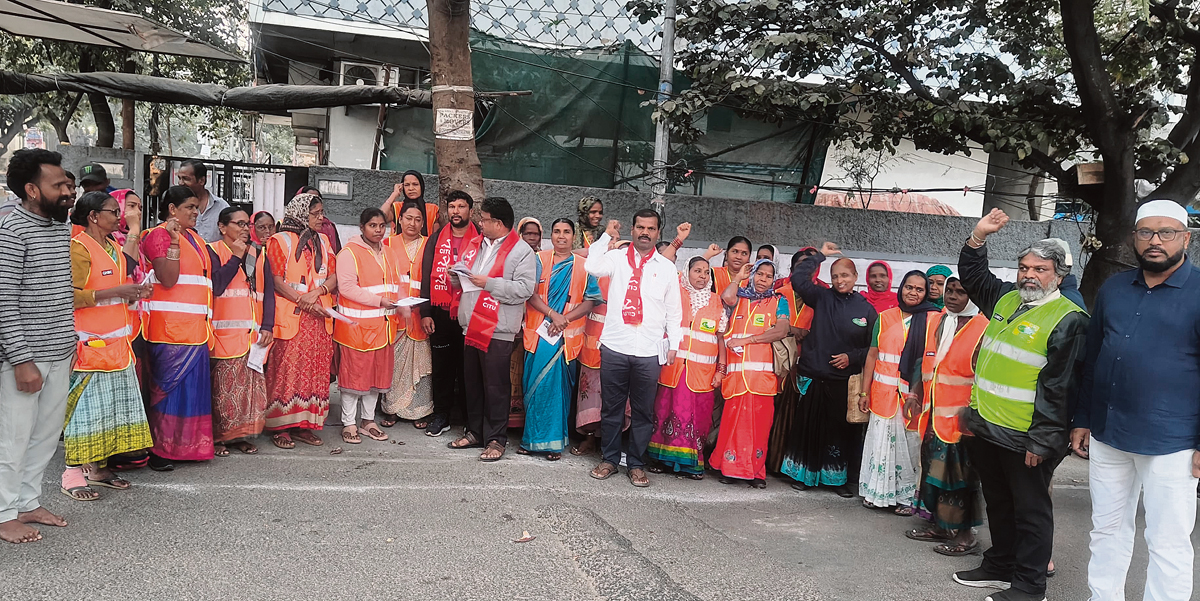 రాష్ట్రంలో బీఆర్‌ఎస్‌ ప్రభుత్వ పాలనలో 9 సంవత్సరాలపాటు మున్సిపల్‌ కార్మికులకు ఒక్క రూపాయి కూడా వేతనాలు పెరగలేదని, ప్రస్తుతం కాంగ్రెస్‌ ప్రభుత్వంలోనూ మున్సిపల్‌ కార్మికుల సమస్యలపై స్పందన లేదని తెలిపారు. పైగా కేంద్ర మోడీ ప్రభుత్వం తీసుకొచ్చిన లేబర్‌ కోడ్‌లకు అనుగుణంగా తెలంగాణలో 10 గంటల పని విధానానికి జీవో జారీ చేసి కార్మికులపై అదనపు భారం మోపుతున్నారన్నారు. మున్సిపల్‌ కార్మికులకు ఇందిరమ్మ ఇండ్లు మంజూరు చేయాలని డిమాండ్‌ చేశారు. ఫిబ్రవరి 12న జరిగే దేశవ్యాప్త సార్వత్రిక సమ్మెలో మున్సిపల్‌ కార్మికులు అధిక సంఖ్యలో పాల్గొని జయప్రదం చేయాలని పిలుపునిచ్చారు. అనంతరం పర్యవేక్షణకు వచ్చిన అంబర్‌పేట సర్కిల్‌ డీఈ రఘు ప్రసాద్‌కు సమ్మె నోటీసు అందజేశారు. ఈ కార్యక్రమంలో మున్సిపల్‌ వర్కర్స్‌ యూనియన్‌ నగర కార్యదర్శి ఎం.దశరథ్‌, నగర ఉపాధ్యక్షులు జి.రాములు, అంబర్‌పేట జోన్‌ కన్వీనర్‌ పి.శ్రీనివాస్‌, బి.సుబ్బారావు, ఎస్‌ఎఫ్‌ఏలు ఆదిల్‌ షరీఫ్‌, నరసింహ, మున్సిపల్‌ కార్మికులు అండాలు, జయశ్రీ, లలిత, మునీషా, నాగేష్‌, ఆదిలక్ష్మి, యశోద, కొమరమ్మ తదితరులు పాల్గొన్నారు.