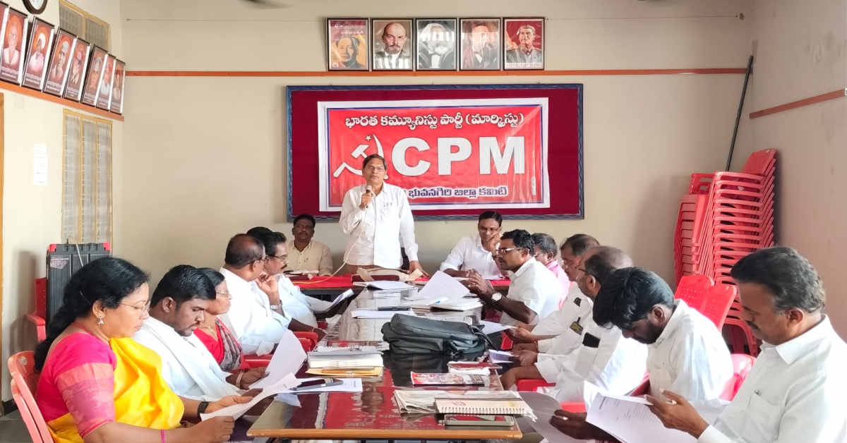 ఆ పార్టీ జిల్లా కార్యదర్శి ఎండి జహంగీర్ మాట్లాడుతూ జిల్లాలో ఇప్పటివరకు అకాల వర్షంతో వేల ఎకరాల పంట నీటిలో కొట్టుకుపోయిన ఇప్పటివరకు అధికారులు పంట నష్టం పై ఇలాంటి నివేదిక ఇవ్వలేదన్నారు. జిల్లాలో ప్రధాన రహదారులు గుంతల మయంగా మారి అనేక ప్రమాదాలు జరుగుతున్నాయని ఆర్ అండ్ బి అధికారులు వెంటనే రోడ్ల మరమ్మత్తులు చేపట్టాలని వారు డిమాండ్ చేశారు. ఈ సమావేశంలోరాష్ట్ర కమిటీ సభ్యులు బట్టుపల్లి అనురాధ జిల్లా కార్యదర్శివర్గ సభ్యులు మాటూరు బాలరాజు, కల్లూరి మల్లేశం, దాసరి పాండు, జెల్లెల పెంటయ్య, బూరుగు కృష్ణారెడ్డి, గుంటోజు శ్రీనివాసాచారి, జిల్లా కమిటీ సభ్యులు కోమటిరెడ్డి చంద్రారెడ్డి, సిర్పంగి స్వామి, దయ్యాల నరసింహ, మాయ కృష్ణ, బొల్లు యాదగిరి, మద్దెల రాజయ్య ఎండి పాషా బొడ్డుపల్లి వెంకటేష్, ఎం యాదయ్య, గుండు వెంకటనర్సు గంగదేవి సైదులు మద్దేపురం రాజు, బోలగాని జయరాములు, అవ్వారు రామేశ్వరి, రాచకొండ రాములమ్మ, ఎంఎ ఇక్బాల్, వనం ఉపేందర్, గడ్డం వెంకటేష్, మల్లేపల్లి లలిత, గోషిక కరుణాకర్, గణపతిరెడ్డి పాల్గొన్నారు.