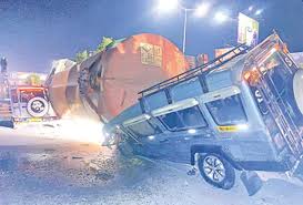 వాహనాలపై పడిన కెమికల్‌ ట్యాంకర్‌..త‌ప్పిన పెను ప్రమాదం
