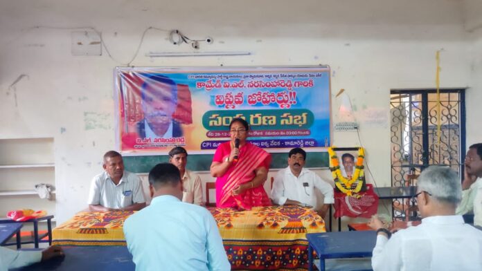 కార్మిక, కర్షక, పీడిత ప్రజల హక్కుల యోధుడు కామ్రేడ్ నర్సింహా రెడ్డి సంస్మరణ సభను కామారెడ్డి జిల్లా కేంద్రంలో పాత జి ఎస్ ఆర్ కళాశాల ఆవరణంలో ఆదివారం నిర్వహించారు. సంస్మరణ సభకు జిల్లాలోని ప్రజాసంఘాల నాయకులు, కార్యకర్తలు అధిక సంఖ్యలో హాజరై అతనితో వరికున్న అనుబంధం, ప్రజల, కార్మికుల పట్లవున్న అతని అంకితభావాన్ని మననం చేసుకొని ఘనంగా నివాళులు అర్పించారు. ఈ సంస్మరణ సభకు సిపిఐ రాష్ట్ర నాయకులు కామ్రేడ్ పశ్య పద్మ అదితిగా హాజరైనారు. వారు మాట్లాడుతూ వి యల్. నర్సింహా రెడ్డి కామారెడ్డి లో మున్సిపల్, ఆర్టీసీ, హమాలీ, హాస్పిటల్ తదితర కార్మిక పోరాటాలు నడిపి ఎన్నో హక్కులు సాధించడానికి నిరంతరం కృషి చేసిన మహనీయుడు. నక్సలైట్ ఉద్యమకాలంలో అనేక మందికి బెయిల్ ఇప్పించి పేదల వకీల్ గా పేరు ప్రక్యాతులు పొందిన వ్యకి అన్నారు.ఈ సభకు న్యాయవాదులు వేణుగోపాల్, సిద్దిరాములు, వెంకట్రాంరెడ్డి, నవీన్ మున్సిపల్ సంఘ నాయకులు లక్సమణ్, నర్సింగరావు, సిపిఐ జిల్లా నాయకులు దశరథ్, బాలరాజ్, బిఎల్ఎఫ్ నాయకులు సిద్దిరాములు, లెక్చరర్ శంకర్, ఆర్టీసీ నాయకులు వెంకటి గౌడ్, కదిర్, వి. డి దాస్ తదితరులు హాజరయ్యారు.