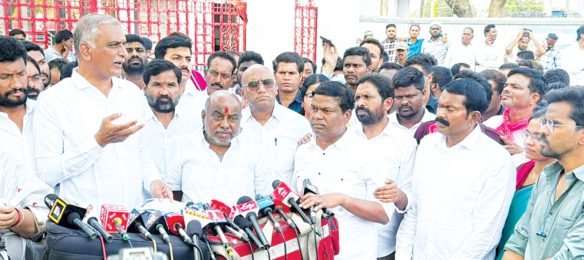 అధికార పార్టీ నాయకులు దాడులు చేసి మరీ బీఆర్ఎస్ నాయకులపై అక్రమ కేసులు బనాయించారని మాజీ మంత్రి, బీఆర్ఎస్ ఎమ్మెల్యే హరీష్రావు ఆరోపించారు. కాంగ్రెస్ నాయకుల వినాశకాలే విపరీతబుద్ధి అని అన్నారు. మంచిర్యాల జిల్లా క్యాతన్పల్లి మున్సిపల్ చైర్మెన్ ఎన్నిక సందర్భంగా జరిగిన అల్లర్ల కేసులో చెన్నూర్ మాజీ ఎమ్మెల్యే బాల్క సుమన్ను పోలీసులు అరెస్ట్ చేసి ఆదిలాబాద్ జైలుకు బుధవారం రాత్రి 11.30 ప్రాంతంలో తరలించారు. బాల్క సుమన్తో పాటు మరో నలుగురిపై కేసులు నమోదు చేశారు. ఈ నేపథ్యంలో గురువారం వారిని జిల్లా జైలులో మాజీ మంత్రి, సిద్దిపేట ఎమ్మెల్యే తన్నీరు హరీశ్రావుతో పాటు ఎమ్మెల్సీ శంబిపూర్ రాజు, మాజీ మంత్రి జోగు రామన్న, ఆసిఫాబాద్, బోథ్ ఎమ్మెల్యేలు కోవ లక్ష్మీ, అనిల్ జాదవ్, మాజీ ఎమ్మెల్యే నడిపెల్లి దివాకర్, దుర్గం చిన్నయ్య, బీఆర్ఎస్ రాష్ట్ర నాయకులు ఆర్ఎస్ ప్రవీణ్ కుమార్ ములాఖత్ అయ్యారు.