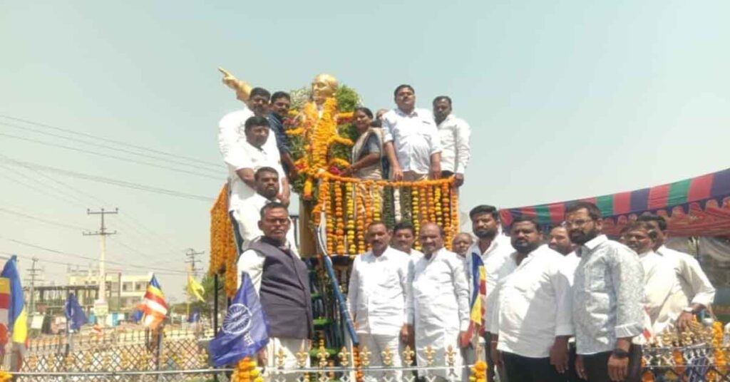 జ్ఞానమే శక్తిగా మార్చి భారత రాజ్యాంగాన్ని రూపుదిద్దిన గొప్ప నాయకుడు డాక్టర్ బి.ఆర్ అంబేద్కర్ అని మద్నూర్ గ్రామ సర్పంచ్ ఉషా సంతోష్ మేస్త్రి కొనియాడారు. డాక్టర్ బి.ఆర్ అంబేద్కర్ 135వ జయంతి సందర్భంగా గ్రామపంచాయతీ ఆధ్వర్యంలో నిర్వహించారు. అంబేద్కర్ విగ్రహానికి గజమాలతో సత్కరించి నివాళులర్పించారు. అనంతరం ఏర్పాటు చేసిన జయంతి వేడుకల ఉత్సవ సభలో సర్పంచ్ పాల్గొన్నారు. మహిళలు సర్పంచ్కు ప్రత్యేకంగా సత్కరించారు. ఈ సందర్భంగా ఆమె మాట్లాడుతూ.. డాక్టర్ బి.ఆర్ అంబేద్కర్ భారతదేశ రాజ్యాంగం రూపులు దిద్దడానికి జ్ఞానమే శక్తిగా మార్చి రచించడం జరిగిందని పేర్కొన్నారు. ఈ జయంతి వేడుకల ఉత్సవ సభలో కాంగ్రెస్ పార్టీ మండల అధ్యక్షులు దరాస్ సాయిలు, కాంగ్రెస్ పార్టీ ముఖ్య నాయకులు మార్కెట్ కమిటీ చైర్మన్ సౌజన్య రమేష్, వైస్ చైర్మన్ పరమేష్ పటేల్, మిర్జాపూర్ హనుమాన్ టెంపుల్ చైర్మన్ పటేల్ మాజీ సింగిల్ విండో చైర్మన్లు శ్రీనివాస్ పటేల్, కొండ గంగాధర్ మాజీ ఎంపీపీ ప్రజ్ఞ కుమార్, కాంగ్రెస్ పార్టీ టౌన్ అధ్యక్షులు బండి గోపి, మాజీ ఎంపిటిసిలు, మహిళలు యువకులు, పెద్ద సంఖ్యలో పాల్గొన్నారు.