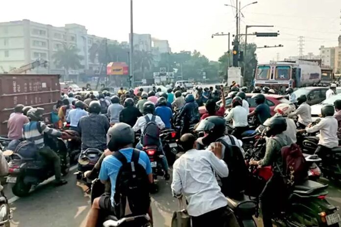 పోర్టు రోడ్డు నుంచి ఎన్ఏడీ వైపు వెళ్తున్న కంటైనర్ లారీ షీలానగర్ కూడలి వద్ద అదుపుతప్పి బోల్తాపడిందని పోలీసులు తెలిపారు. ట్రాఫిక్ సిబ్బంది నాలుగు క్రేన్ల సహాయంతో కంటైనర్ను తొలగించే ప్రయత్నం చేస్తున్నట్లు వివరించారు.