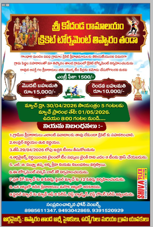 సంప్రదించాల్సిన ఫోన్ నెంబర్స్ 8985611347, 9493042869, 9391520929, ఆర్గనైజర్స్ : తిప్పారం తాండ ఆర్మీ సైనికులు, ఉద్యోగులు మరియు గ్రామ యువకులు