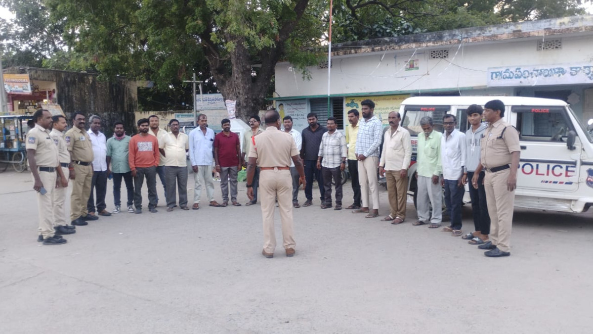 రైతులు తమ పంట ధాన్యాన్ని రోడ్లపై ఆరబోయవద్దని పోలీసులు సూచించారు. వీరాపూర్ గ్రామంలో రోడ్లపై ధాన్యం ఆరబోసిన రైతులకు అవగాహన కల్పించారు. రోడ్లపై ధాన్యం ఆరబోసి వాహనాదారుల ప్రమాదాలకు కారణమవ్వద్దని పోలీసులు సూచించారు. రైతులు తమ పంట పోలాల వద్దనే ధాన్యం ఆరబోయాలని కోరారు. కానిస్టెబుల్లు రవి,శ్రీను పాల్గొన్నారు.