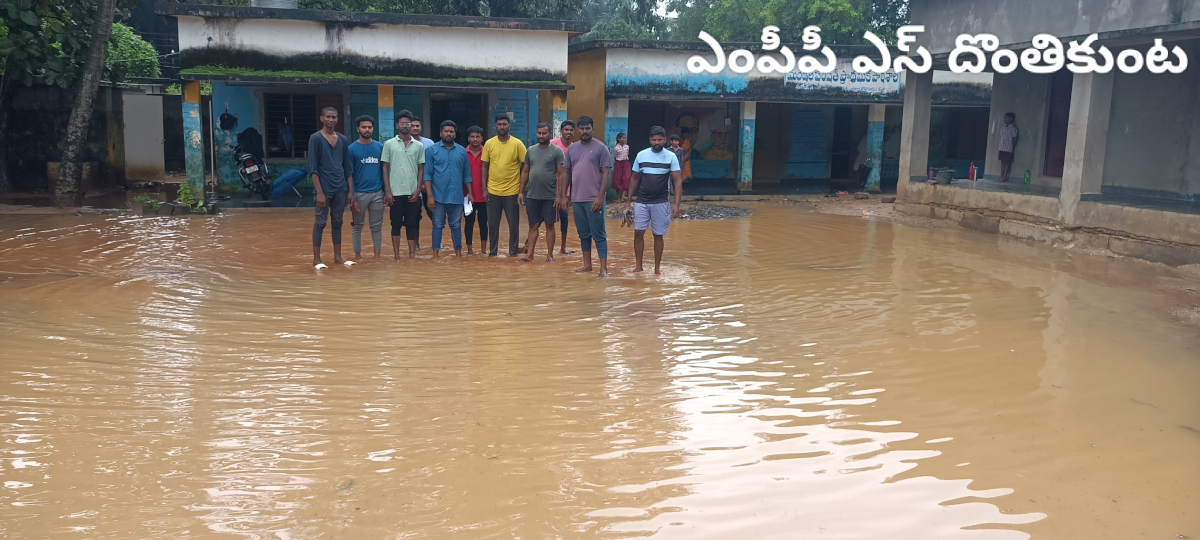 దొంతికుంట పాఠశాలలో ప్రాంగణంలోకి చేరిన  నీరు