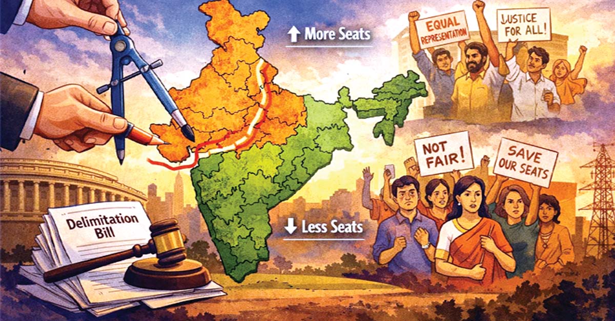 మరో ముఖ్య అంశం గ్రామీణ-పట్టణ అసమానత. పట్టణ ప్రాంతాల్లో జనాభా సాంద్రత ఎక్కువగా ఉండగా, గ్రామీణ ప్రాంతాలు విస్తీర్ణంగా ఉండి తక్కువ జనాభాను కలిగి ఉంటాయి. పూర్తిగా జనాభా ఆధారంగా డిలిమిటేషన్ జరిగితే పట్టణ నియోజకవర్గాల ప్రాధాన్యం పెరిగి, వ్యవసాయం, గ్రామీణ మౌలిక సదుపాయాల సమస్యలు పక్కన పడే ప్రమాదం ఉంది.అయితే డిలిమిటేషన్ అవసరం లేదని చెప్పడం సరైంది కాదు. చాలా కాలంగా స్థిరంగా ఉన్న నియోజకవర్గాల కారణంగా కొన్ని ప్రాంతాల్లో ఒక ఎంపీ లేదా ఎమ్మెల్యేకు అసమానంగా అధిక జనాభా ప్రాతినిధ్యం వహించాల్సి వస్తోంది. ఇది ప్రజాస్వామ్య సమానత్వాన్ని దెబ్బతీస్తోంది. కాబట్టి డిలిమిటేషన్ అనివార్యం.ప్రధాన ప్రశ్న ఏమిటంటే-ఇది ఎలా అమలు కావాలి? కేవలం జనాభా ఆధారంగా కాకుండా, భౌగోళిక విస్తీర్ణం, అభివృద్ధి సూచికలు, పరిపాలనా అవసరాలు వంటి అంశాలను పరిగణనలోకి తీసుకునే సమగ్ర విధానం అవసరం. ఇది గణిత సమానత్వాన్ని కొంతవరకు తగ్గించినా, సమగ్రన్యాయాన్ని అందించగలదు. అలాగే ప్రతి రాష్ట్రానికి కనీస ప్రాతినిధ్యాన్ని నిర్ధారించే విధంగా రాజ్యాంగ పరిరక్షణలు అవసరం. దీని వల్ల రాష్ట్రాల మధ్య రాజకీయ సమతౌల్యం కాపాడబడుతుంది. రాష్ట్రాల అంతర్గతంగా మాత్రం జనాభా ఆధారంగా సర్దుబాట్లు చేయవచ్చు. మరో ముఖ్య అంశం-జనాభా నియంత్రణలో ముందున్న రాష్ట్రాలను రాజకీయంగా నష్టపరచకూడదు. ఇందుకోసం ఆర్థిక వనరుల పంపిణీ, కేంద్ర నిధుల కేటాయింపులో సముచిత మార్పులు చేయాల్సిన అవసరం ఉంది. ఇప్పటికే ఈ అంశంపై రాజకీయ స్థాయిలో విభిన్న అభిప్రాయాలు వ్యక్తమవుతున్నాయి. దక్షిణ రాష్ట్రాలకు సంభవించే ప్రభావాలపై చర్చ జరుగుతున్నప్పటికీ, ప్రభుత్వంలో ఉన్న దక్షిణ రాష్ట్రాలకు చెందిన కొంతమంది ప్రజాప్రతినిధులు స్పష్టమైన వైఖరి వ్యక్తం చేయడంలో మౌనం పాటిస్తున్నారనే విమర్శలు వినిపిస్తున్నాయి. మరోవైపు ప్రతిపక్షం ఈ అంశాన్ని బలంగా వ్యతిరేకిస్తోంది. ఈ పరిస్థితుల్లో, పార్టీలకు అతీతంగా ప్రజల ప్రయోజనాలకే ప్రాధాన్యం ఇవ్వడం ప్రజాప్రతినిధుల బాధ్యతగా మారుతుంది.డిలిమిటేషన్ వల్ల ప్రజాప్రతినిధుల సంఖ్య పెరిగే అవకాశం ఉన్న నేపథ్యంలో, ప్రభుత్వ వ్యయం కూడా పెరిగే అవకాశాన్ని నిర్లక్ష్యం చేయలేము. కాబట్టి సభ్యుల సంఖ్య పెంపుతో పాటు పరిపాలనా వ్యయాల నియంత్రణపై కూడా స్పష్టమైన విధానం అవసరం. భారతదేశంలాంటి విభిన్నతల దేశంలో ఒకే ప్రమాణంతో నిర్ణయాలు తీసుకోవడం కంటే, సమగ్రదృష్టితో ముందుకు సాగడం ముఖ్యం.
