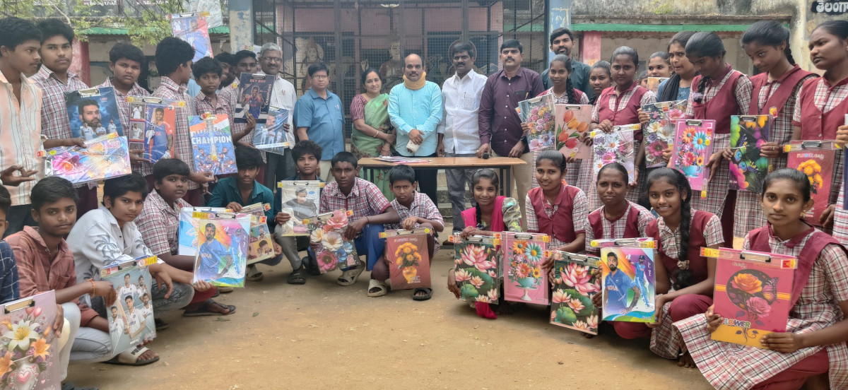 పదో తరగతి విద్యార్థులకు పరీక్ష ప్యాడులు, స్కేల్లు వితరణ