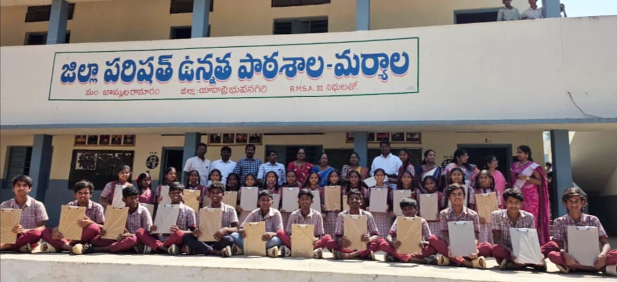 ప్రముఖ రాజకీయ నాయకులు కీ “శే ” జిట్టా బాలకృష్ణారెడ్డి జ్ఞాపకార్థంగా, జిట్టా యువసేన నాయకులు సేవర్తి మధు ఆధ్వర్యంలో జిల్లా పరిషత్ ఉన్నత పాఠశాల మర్యాల గ్రామంలోని పదవ తరగతి విద్యార్థులకు పరీక్షల శుభాకాంక్షలు తెలియజేస్తూ, పరీక్షా ప్యాడ్లు, పెన్స్, పెన్సిల్స్, స్కేలు, హాల్ టికెట్ కవర్లు పంపిణీ కార్యక్రమం నిర్వహించారు.