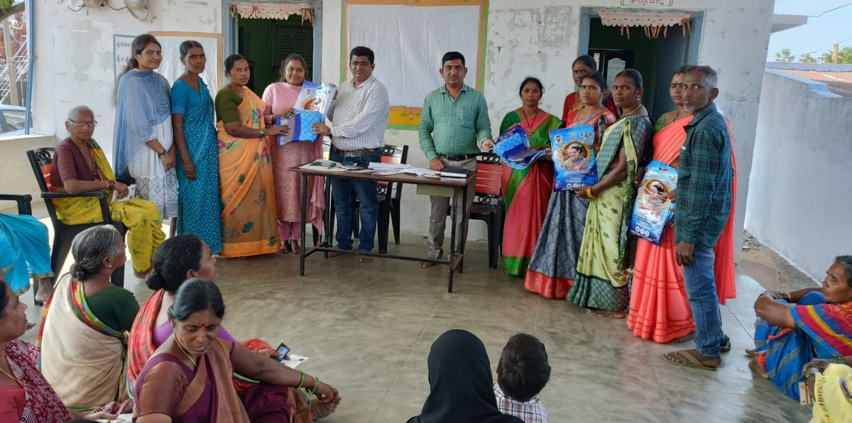 మండలంలోని అన్ని గ్రామాలలో స్వయం సహాయక సంఘాల సభ్యులకు, 18 సంవత్సరాల పైబడిన మహిళా సంఘాలలో లేని మహిళలకు కూడా చీరలు పంపిణి చేస్తున్నట్లు సెర్ప్ ఏపీఎం పి.నరహరి తెలిపారు. సోమవారం అల్లీపూర్,ఆలూర్, వీరాపూర్,ధర్మాజీపేట్ గ్రామాలలో ఎంపీడీవో బింగి చిరంజీవి ఆధ్వర్యంలో చీరల పంపిణీ కార్యక్రమాన్ని ప్రారంభించారు. ఈ కార్యక్రమంలో ఎంపీవో సుష్మ,ఆర్.ఐ పద్మయ్య, దేవదాస్, సీసిలు గంగారాం, సుజాత, లావణ్య, పంచాయితి కార్యదర్శులు, జీపివోలు, మండల సమాఖ్య సభ్యులు పాల్గొన్నారు.