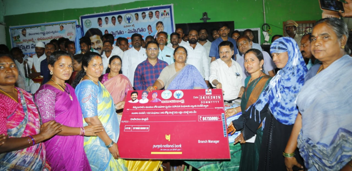 తర్వాత మండలంలోని మహిళా స్వయం సహాయక సంఘాలకు బ్యాంకు లింకేజి ద్వారా 102 సంఘాలకు రూ.6 కోట్ల 47 లక్షల 55 వేల ఋణాల పంపిణీ చెక్కను మంత్రి సీతక్క అందచేశారు. అనంతరం కన్నాయిగూడెం  మండల పరిధిలోని 16 మంది లబ్ధిదారులకు కళ్యాణ లక్ష్మీ/ షాది ముభారక్ చెక్కులను మంత్రి అందచేశారు. ఈ కార్యక్రమంలో కలెక్టర్ దివాకర్ టి.ఎస్ ,డి ఆర్ డి ఓ శ్రీనివాస్ రావు, మండల ప్రత్యేక అధికారి వెంకట్ నారాయణ, తహసిల్దార్ సర్వర్ ,ఎంపి డి ఓ అనిత ప్రజా ప్రతినిధులు, మహిళా సంఘాల సభ్యులు, సంబంధిత అధికారులు, కాంగ్రెస్ పార్టీ కార్యకర్తలు కళ్యాణ లక్ష్మీ/షాది ముభారక్ లబ్ధిదారులు తదితరులు పాల్గొన్నారు.