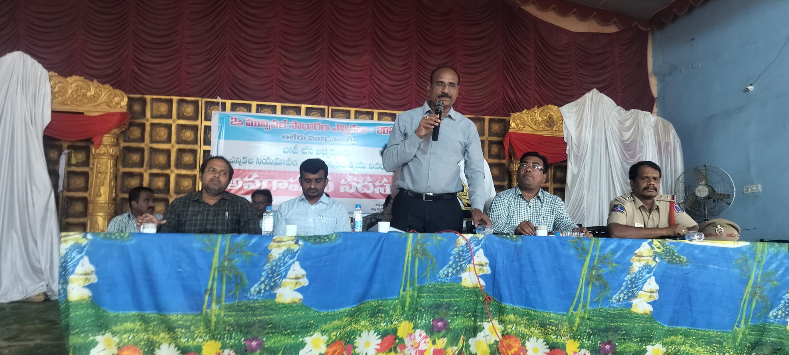 మున్సిపల్ ఎన్నికలలో పోటీ చేస్తున్న అభ్యర్థులు, ఎన్నికల నియమావళిని తూచా తప్పకుండా పాటించాలని, ఆలేరు మున్సిపల్ ఎన్నికల ఇన్చార్జ్, ఆర్డీవో కృష్ణారెడ్డి అన్నారు. ఆలేరు పట్టణంలో బుధవారం ఎన్నికలలో పోటీ చేస్తున్న వివిధ పార్టీల, స్వతంత్ర అభ్యర్థులతో, ఎన్నికల నిర్వహణలో ఒక లక్ష రూపాయల ఖర్చు వివరాలు పొందుపరచడం, తీసుకోవాల్సిన జాగ్రత్తల గురించి మాట్లాడారు. పోటీ చేస్తున్న అభ్యర్థులు, డబ్బించి తమా గురించి గొప్పగా పెడార్టికల్ రాయించుకోవద్దన్నారు. న్యూస్ ని డిక్లేర్ చేయడానికి ప్రతి మున్సిపల్ పరిధిలో, వీడియో ఒకటి ఉంటదని, ఆ వీడియోస్ చూసి వాళ్ళు ఇది నిజమైనటువంటి వార్తన, లేకుండా ఒక అభ్యర్థికి అనుకూలంగా రాయించుకున్నారా, నిర్ధారణ చేస్తామన్నారు. నిబంధనలు ఉల్లంఘించిన వారికి, రాబోయేటటువంటి మూడు ఎన్నికలకు పోటీ చేసే అవకాశం ఉండదు అన్నారు. కేసులు నమోదు చేస్తామన్నారు. డిస్టిక్ ఆడిట్ ఆఫీసర్ శ్రీనివాస్ మాట్లాడుతూ.. ఎన్నికల ఖర్చు ఏ విధంగా చేయాలి, ఏం చేయాలి, ఏం చేయకూడదు, ప్రచార సమయంలో తర్వాత, పోస్టు ఎలక్షన్ అయిన తర్వాత కూడా మీ యాక్టివిటీ ఏంటిది అనేది తెలుసుకుంటామన్నారు.