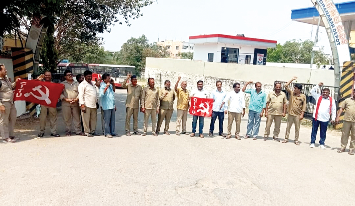 – రాష్ట్ర వ్యాప్తంగా సీఐటీయూ ఆధ్వర్యంలో డిపోల ఎదుట ధర్నాలు