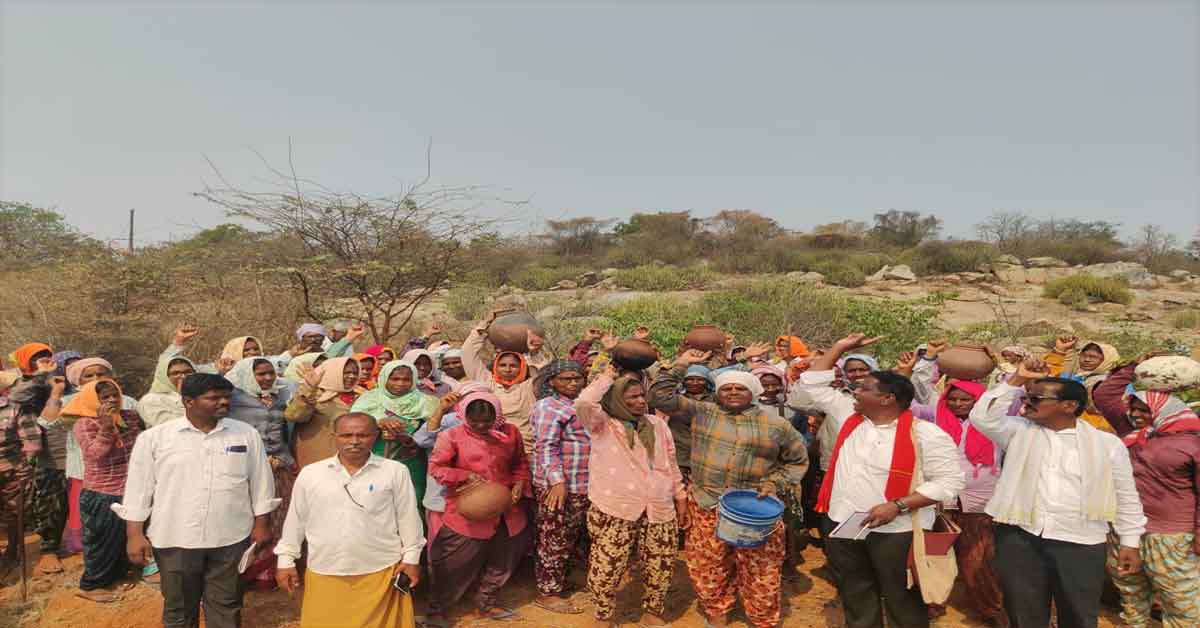 న‌వ‌తెలంగాణ‌-హైద‌రాబాద్: మండుటెండలో పనిచేస్తున్న ఉపాధి హామీ కార్మికులకు కనీస వేతనం అమలు కాక అర్ధాకలితో జీవిస్తున్నారని తెలంగాణ వ్యవసాయ కార్మిక సంఘం జిల్లా ప్రధాన కార్యదర్శి కొండమడుగు నర్సింహ్మ ఆవేదన వెలిబుచ్చారు. మంగళవారం చౌటుప్పల మండలం జైకేసారం గ్రామంలోని ఉపాధి హామీ పని ప్రదేశాన్ని తెలంగాణ వ్యవసాయ కార్మిక సంఘం మండలం కమిటీ ఆధ్వర్యంలో సందర్శించి, వారి సమస్యలను అడిగి తెలుసుకున్నారు. ఈ సంద‌ర్బంగా వారితో మాట్లాడుతూ.. ఉపాధి హామీ కార్మికులను క్షేత్ర‌స్థాయికి ఉన్న‌తాధికారులు ప‌రిశీలించాల‌ని, అప్ప‌డే వారి బాధ‌లు తెలుస్తాయ‌ని, కార్మికుల‌ కష్టాలు చెప్పలేని విధంగా ఉన్నాయని అన్నారు. ప‌ని ప్ర‌దేశంలో కనీసం తాగునీరు అందుబాబులో లేద‌ని, జైకేసారంతో పాటు జిల్లా వ్యాప్తంగా వందలాది గ్రామాల్లో త్రాగునీరు అందించడం లేదని విమర్శించారు.