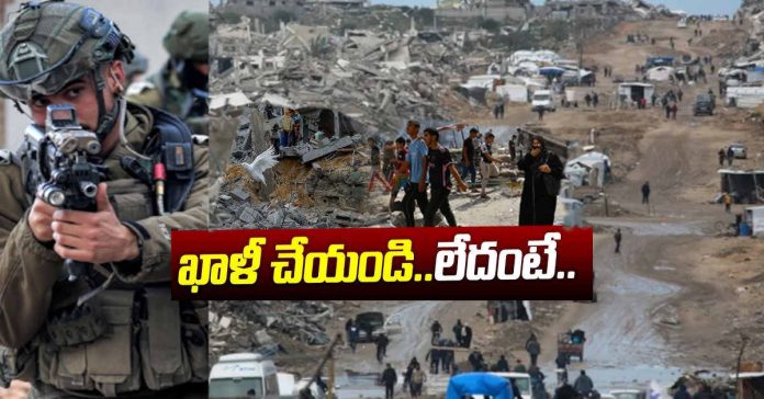 నవతెలంగాణ హైదరాబాద్: గాజా నగరాన్ని చుట్టుముట్టినట్లు ఇజ్రాయిల్ రక్షణ మంత్రి ఇజ్రాయిల్ కాట్జ్ అన్నారు. గాజా నగరాన్ని ఇజ్రాయిల్ పూర్తిగా చుట్టుముట్టిందని, మిగిలిన ప్రజలు వెంటనే గాజాను వదిలి వెళ్ళాలని హెచ్చరించారు. వెళ్ళని వారిని ఉగ్రవాదులుగా లేదా ఉగ్రవాదుల మద్దతుదారులగా పరిగణిస్తామని తెలిపారు. పాలస్తీనా నివాసితులు పారిపోవడానికి, హమాస్ మాత్రమే ఈ ప్రాంతంలో మిగిలి ఉండేలా చూసుకోవడానికి ఇదే చివరి అవకాశం అని కూడా ప్రకటన పేర్కొంది. ట్రంప్, నెతన్యాహు సంయుక్తంగా గాజా శాంతి ప్రణాళికను ఆమోదించారనే వార్తల నేపథ్యంలో ఈ చర్య వచ్చింది. యుద్ధం వీలైనంత త్వరగా ముగిసి, 72 గంటల్లోపు అన్ని హమాస్ బందీలను విడుదల చేయాలని ప్రణాళిక నిర్దేశిస్తుంది. ఈ షరతును సౌదీ అరేబియా, జోర్డాన్, యుఎఇ, ఖతార్ మరియు ఈజిప్ట్ వంటి ఇతర ప్రపంచ దేశాలు కూడా అంగీకరించాయి. అదే సమయంలో ఇజ్రాయిల్ గాజాకు చేరుకున్న సహాయ పడవలను కూడా అడ్డుకుంది. గాజాకు అవసరమైన సామాగ్రితో బయలుదేరిన గ్లోబల్ సీ ఫ్లోటిల్లాను తీరానికి చేరుకోగానే సైన్యం ఆపివేసింది.