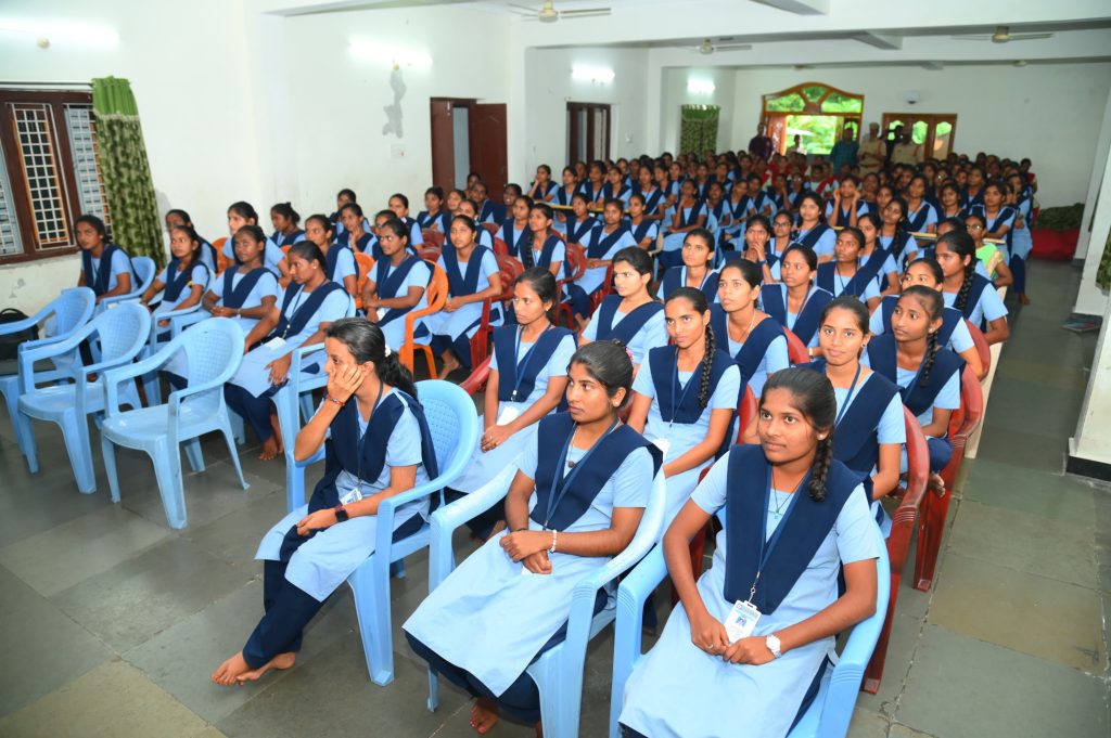 ప్రస్తుత కాలం లో జరుగుతున్న  నేరాలు అయిన ఏపీకే ఫైల్స్ వాట్సప్  లో ఫార్వర్డ్ చేస్తున్నారు,ఈ ఏపీకే ఫైల్స్ ఓపెన్ చేస్తే ఫోన్ హ్యాక్ కు గురి అయి డబ్బులు పోయే అవకాశం ఉందన్నారు, అలాగే జంప్డ్ డిపాజిట్ స్కీం, డిజిటల్ అరెస్టు, ఇన్వెస్ట్మెంట్ ప్రౌడ్, సైబర్ బుల్లింగ్ గురించి విద్యార్థులకు  అవగాహన కల్పించారు. అలాగే బ్యాంక్ అదికారులు ఎవరు కూడా ఫోన్ చేసి ఓటీపీ వివరాలు అడగరు అనే విషయాలను గుర్తించాలని ,బ్యాంక్ వారు ఏలాంటి మెసేజ్ లు గాని, లింక్స్ పంపరని ఇట్టి విషయాలు గమనించి మీ కుటుంబ సభ్యులకు తెలియజేయాలని, ఏమైన సందేహాలు ఉంటే బ్యాంక్ కు వెళ్లి నిర్ధారించుకోవాలి అని అన్నారు. గ్రూప్ లలో లేదా వ్యక్తిగత నెంబర్ లకు అపరిచిత వ్యక్తుల నుండి ఎస్ ఎమ్ ఎస్ ఈ మెయిల్స్ ద్వారా గాని, వాట్సాప్ ట్యీట్టర్ ద్వారా వచ్చే బ్లూ కలర్ లింక్స్ ను క్లిక్ చేసి మోసపోవద్దని, అలా వచ్చే మెసేజ్ లకు స్పందించవద్దనీ తెలిపారు. ఎవరైనా సైబర్ నేరాలకు గురైన  వెంటనే స్పందించి 1930 కి సమాచారం అందించి ఎం సి ఆర్ పి పోర్టల్  లో ఫిర్యాదు చేస్తే సంబంధిత పోలీస్ స్టేషన్ వారు తక్షణమే స్పందిస్తారు. తద్వారా పోయిన డబ్బులు రికవరీ చేసుకునే అవకాశం ఉందని అన్నారు. ఈ కార్యక్రమoలో సైబర్ క్రైమ్ డీఎస్పీ లక్ష్మీనారాయణ ఎస్బీ సీఐ రాము,1 టౌన్ సీఐ రాజశేఖర్ రెడ్డి, ఎస్.ఐ విష్ణు,, కళాశాల విద్యార్థినులు పాల్గొన్నారు.
