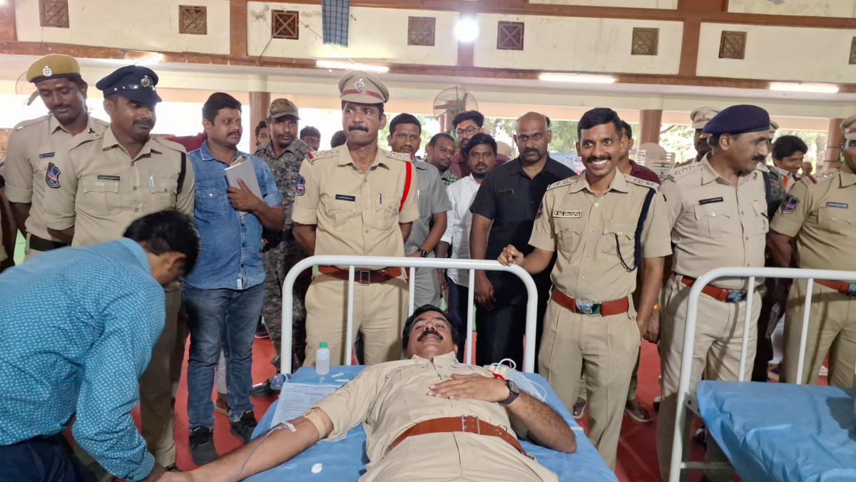 ప్రతి ఒక్కరూ రక్తదానం చేయడానికి ముందుకు రావాలని జిల్లా సీపీ సాయి చైతన్య అన్నారు. పోలీస్ అమరవీరుల వారోత్సవాల సందర్భంగా బుధవారం పట్టణంలో రక్తదాన శిబిరం నిర్వహించినారు. ఈ సందర్భంగా ఆయన మాట్లాడుతూ.. పోలీసులు కేవలం శాంతి భద్రతలను పరిరక్షించడమే కాకుండా సేవా కార్యక్రమాల్లో కూడా ముందువరసలో ఉంటారని, ముఖ్యంగా రక్తదానంపై ఉన్న అపోహలను నమ్మకుండా ప్రతి ఒక్కరూ రక్తదానం చేసేందుకు ముందుకు రావాలని అన్నారు. మనం చేసే రక్తదానం వలన అత్యవసర సమయంలో, ప్రమాద పరిస్థితుల్లో ఉన్నవారికి, తలసేమియా వంటి వ్యాధిగ్రస్తులకు ఎంతో మేలవుతుందని, రక్తదానం ఒక మహత్తరమైన సేవ-ఇది మనిషి ప్రాణాలను కాపాడే పవిత్రమైన కార్యం అని పేర్కొన్నారు. ఇలాంటి సేవా కార్యక్రమాల్లో ప్రతి ఒక్కరూ చురుకుగా పాల్గొనాలని ఆయన పిలుపునిచ్చారు. ఈ కార్యక్రమంలో అసిస్టెంట్ కమిషనర్ ఆఫ్ పోలీస్ వెంకటేశ్వర్ రెడ్డి, స్టేషన్ హౌస్ ఆఫీసర్ సత్యనారాయణ గౌడ్, డివిజన్ పరిధిలోని ఎస్ఐలు, పోలీస్ అధికారులు సిబ్బంది పట్టణ యువకులు పాల్గొన్నారు.