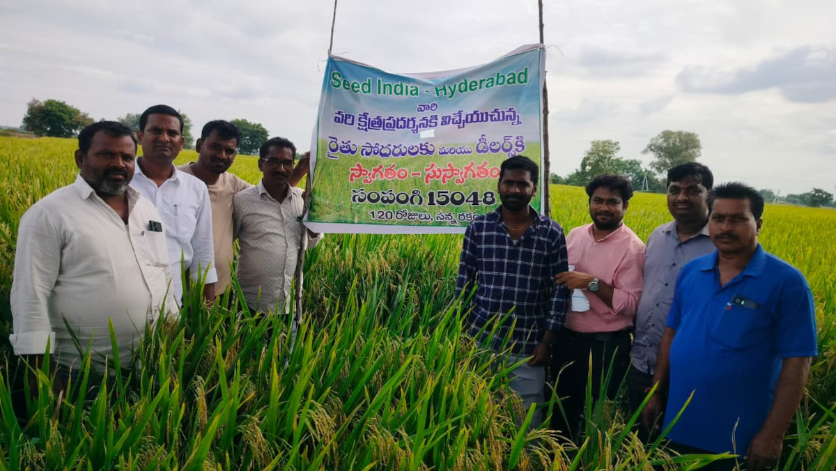 ముధోల్ మండలంలోని ఎడ్ బిడ్ గ్రామ శివారులో గల కాశిరాం అనే రైతు పొలంలో మంగళవారం సంపంగి–15048 వరి రకంపై క్షేత్ర ప్రదర్శన కార్యక్రమం నిర్వహించారు. ఈ కార్యక్రమంలో కంపెనీ ప్రతినిధులు పాల్గొని రైతులకు సంపంగి–15048 రకానికి సంబంధించిన ప్రత్యేకతలు, దిగుబడి లక్షణాలు, వ్యాధి నిరోధకత, తక్కువ కాలంలో పంట పండించే సామర్థ్యం వంటి అంశాలపై వివరంగా రైతులకు అవగాహన కల్పించారు.