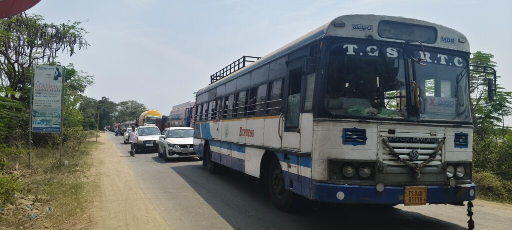 సుమారు నాలుగు కిలోమీటర్ల మేర నిలిచిన వాహనాలు