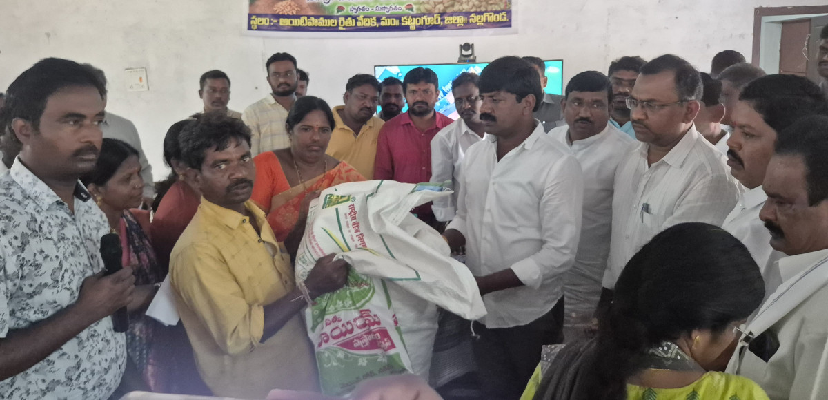 రైతులు నూనె గింజల ఉత్పత్తి పెంచేందుకు కేంద్ర ప్రభుత్వం అందిస్తున్న ఉచిత వేరుశనగ విత్తనాల ను సద్వినియోగం చేసుకొని అధిక దిగుబడులు సాధించాలని ఎమ్మెల్యే వేముల వీరేశం సూచించారు. మంగళవారం మండలంలోని ఐటిపాముల గ్రామంలో రైతు వేదికలో జాతీయ నూనె గింజల ఉత్పత్తి ప్రోత్సాహక పథకంలో భాగంగా రైతులకు 100% సబ్సిడీపై వేరుశనగ విత్తనాలను ఆయన అందించారు. ఈ సందర్భంగా మాట్లాడారు. వేరుశెనగ విత్తనాలను తీసుకొని సాగు చేస్తున్న రైతులు వ్యవసాయ శాఖ వారి సూచనలు పాటించి అధిక దిగుబడులు పొందాలని అన్నారు. ఈ కార్యక్రమంలో నకిరేకల్ మార్కెట్ కమిటీ చైర్మన్ శ్రీమతి గుత్తా మంజుల, నకిరేకల్ ఏడిఏ ఎండి జానీమియా, తహసిల్దార్ పుష్పలత, మండల వ్యవసాయ అధికారి గిరిప్రసాద్,మాజీ జెడ్పిటిసిలు మాద యాదగిరి, సుంకరబోయిన నర్సింహ్మ, నాయకులు పెద్ది చుక్కయ్య, రెడ్డిపల్లి సాగర్, ఎడ్ల పెద్దరాములు, వెంకట్ రెడ్డి, లింగయ్య ఏఈ ఓ లు రమణ,పరశురాం, నవీన్ ఉన్నారు.